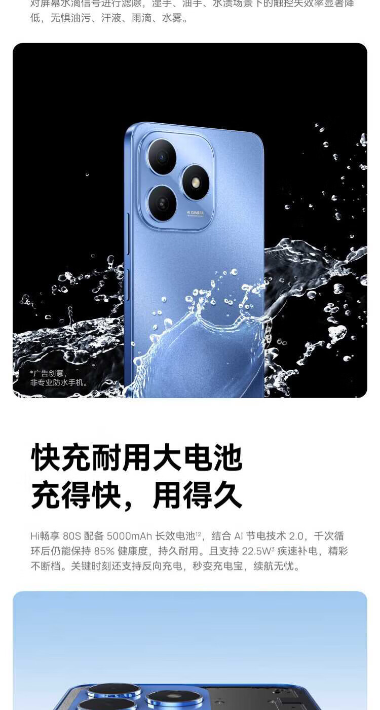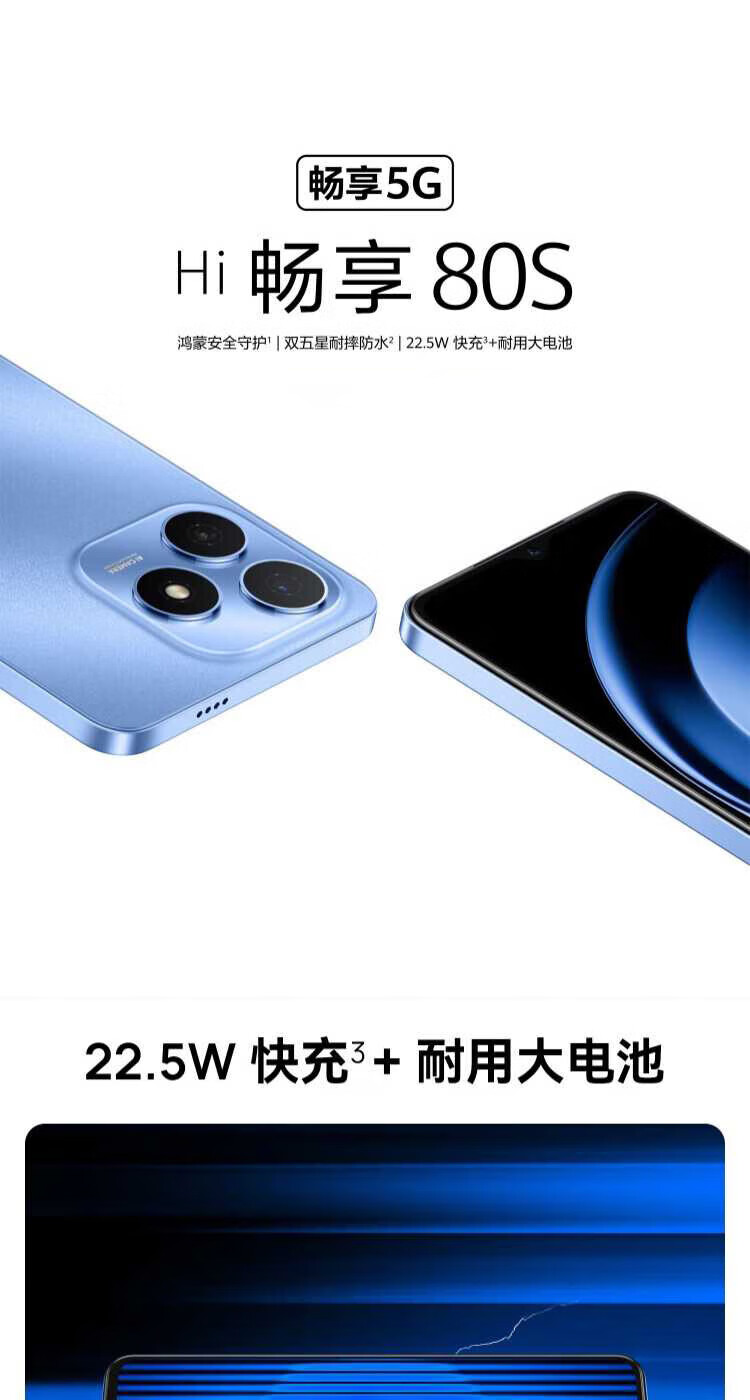 华为 智选 Hi畅享 80S 新品全网通5G手机 鸿蒙安全守护 22.5W快充5000mAh追剧长续航手机 曜石黑 6GB+128GB 【官方标配】