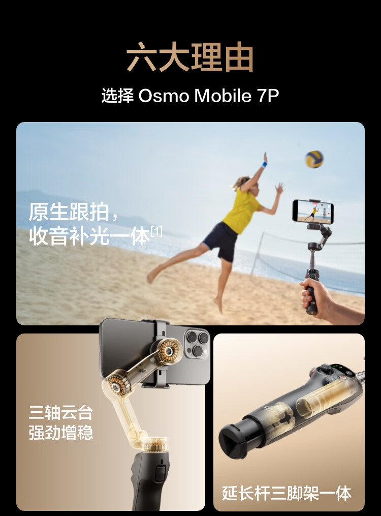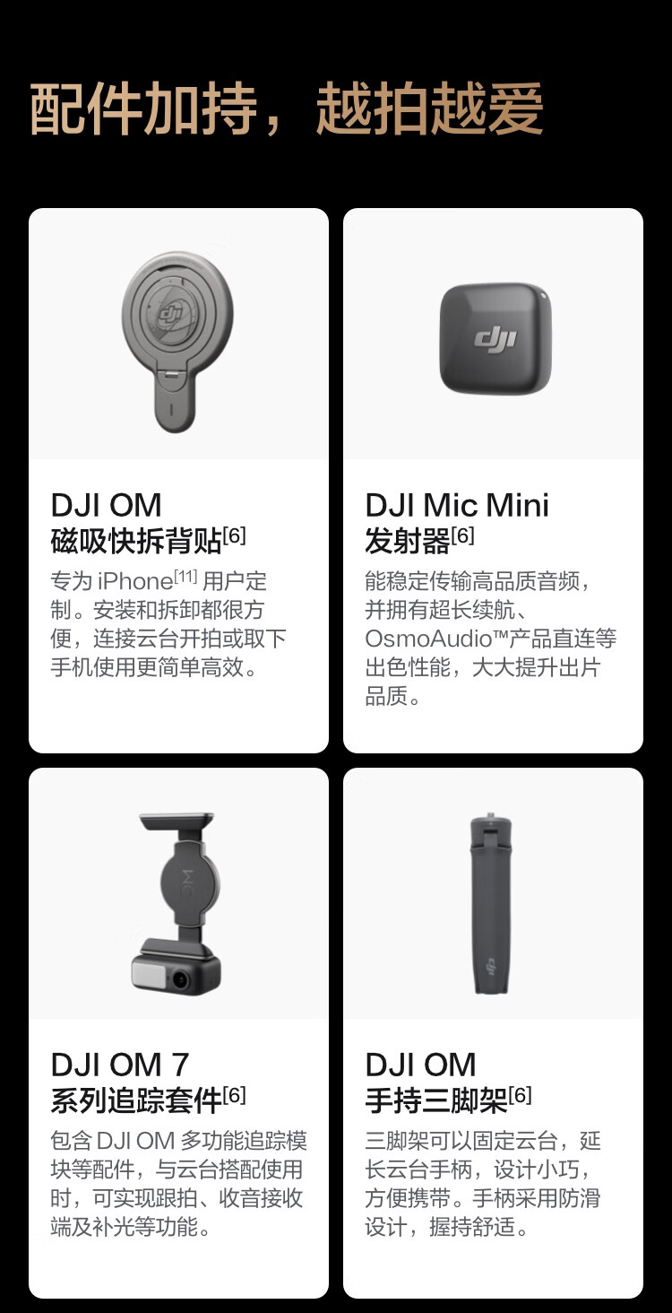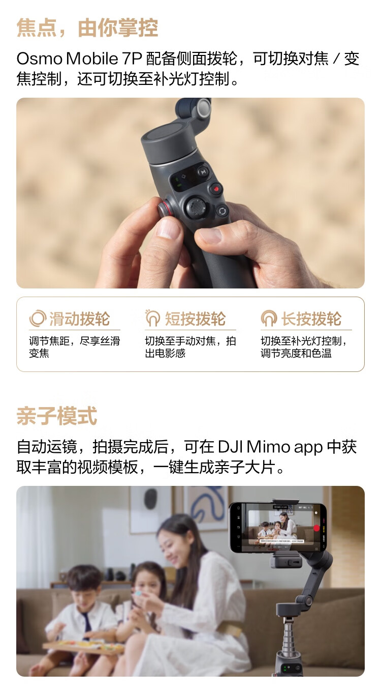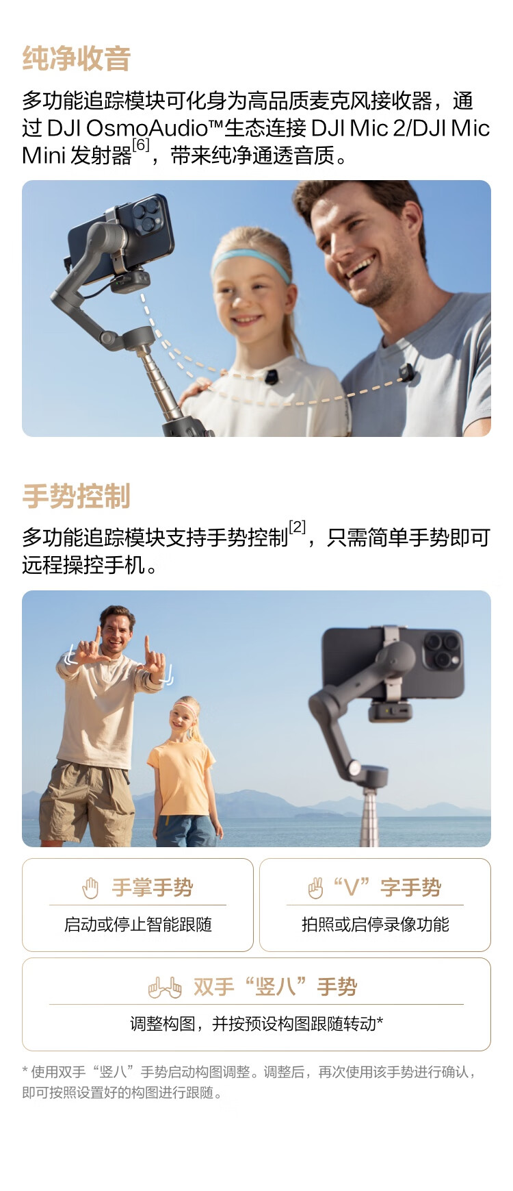 大疆 DJI Osmo Mobile 7P 全场景跟拍手机稳定器OM7P智能跟拍直播vlog防抖手持云台折叠自拍杆拍摄神器 Vlog套装(Mic Mini 发射器碳素黑) 官方标配