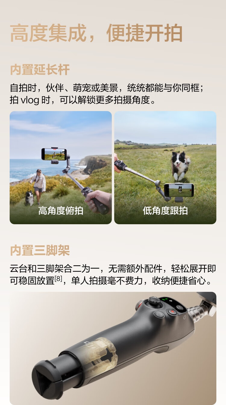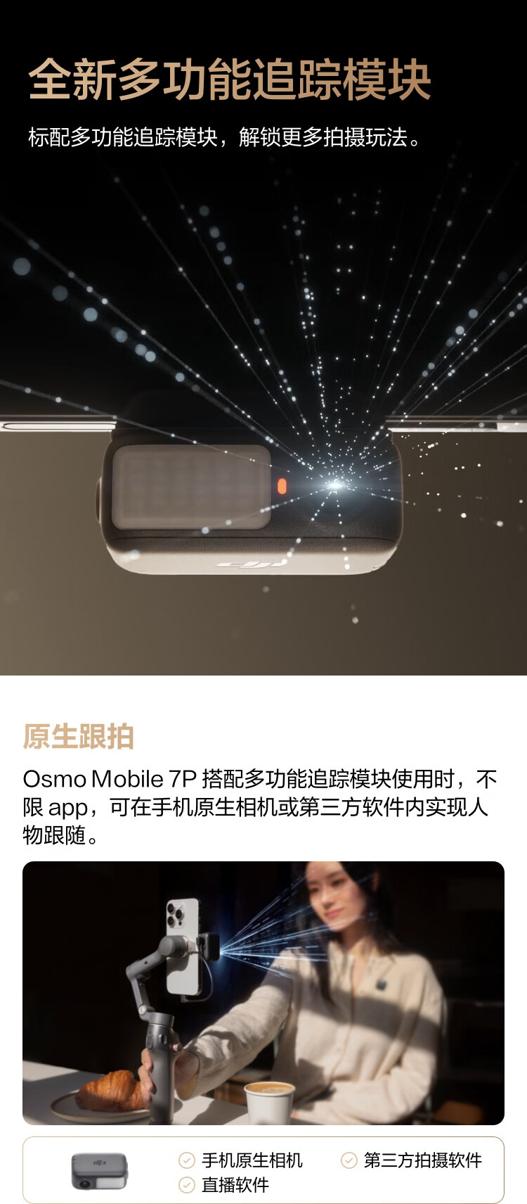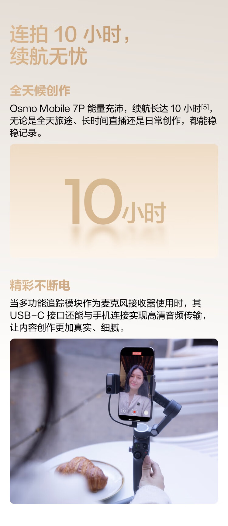 大疆 DJI Osmo Mobile 7P 全场景跟拍手机稳定器OM7P智能跟拍直播vlog防抖手持云台折叠自拍杆拍摄神器 Vlog套装(Mic Mini 发射器碳素黑) 官方标配