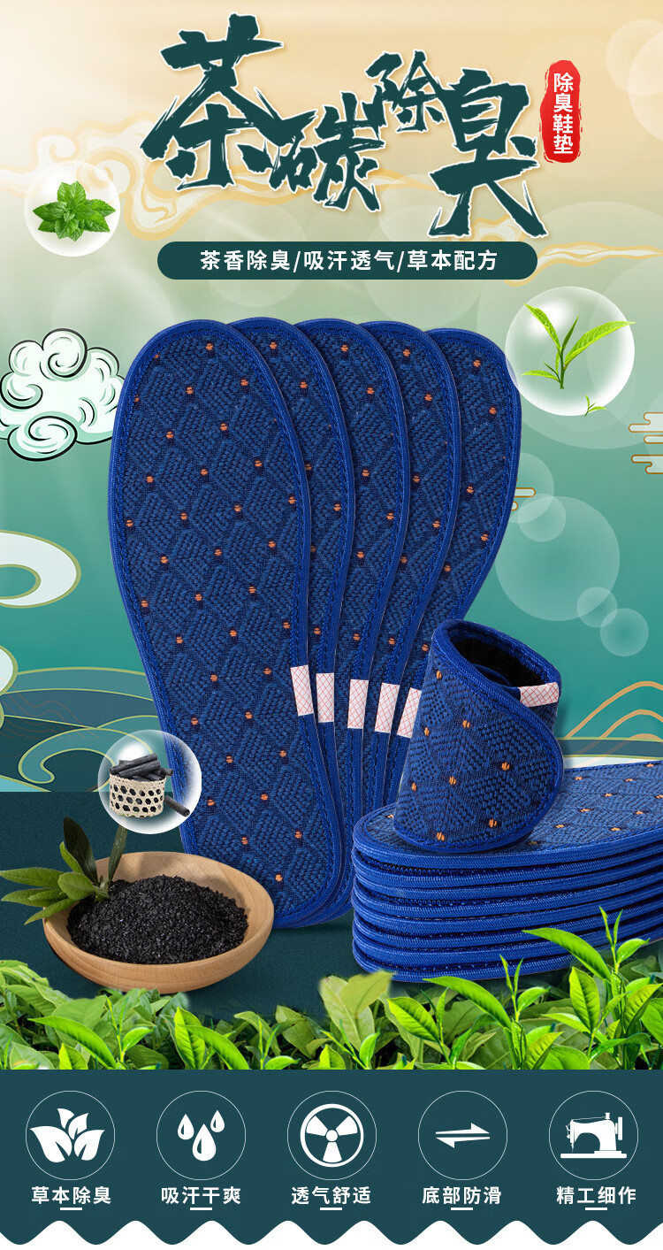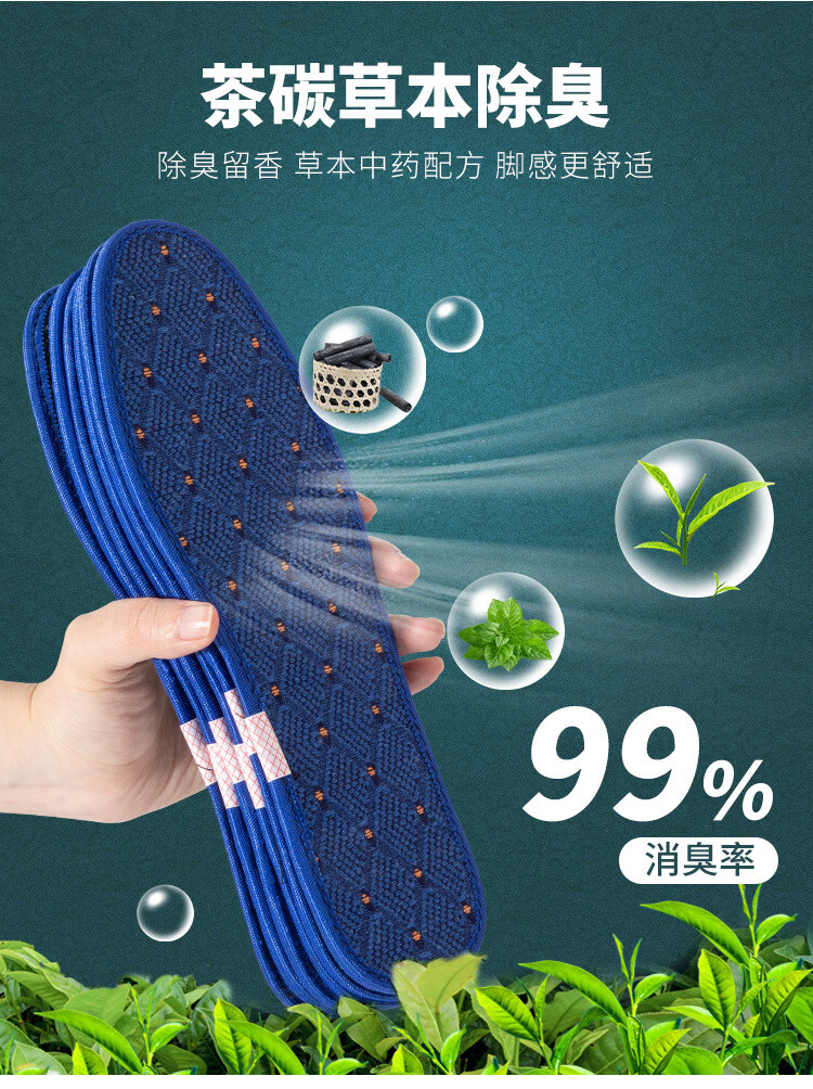 茶碳防臭鞋垫男吸汗防臭透气抗菌不闷脚留香除臭鞋垫女士运动舒适 【10双超值】植物萃取|抗菌除臭 42