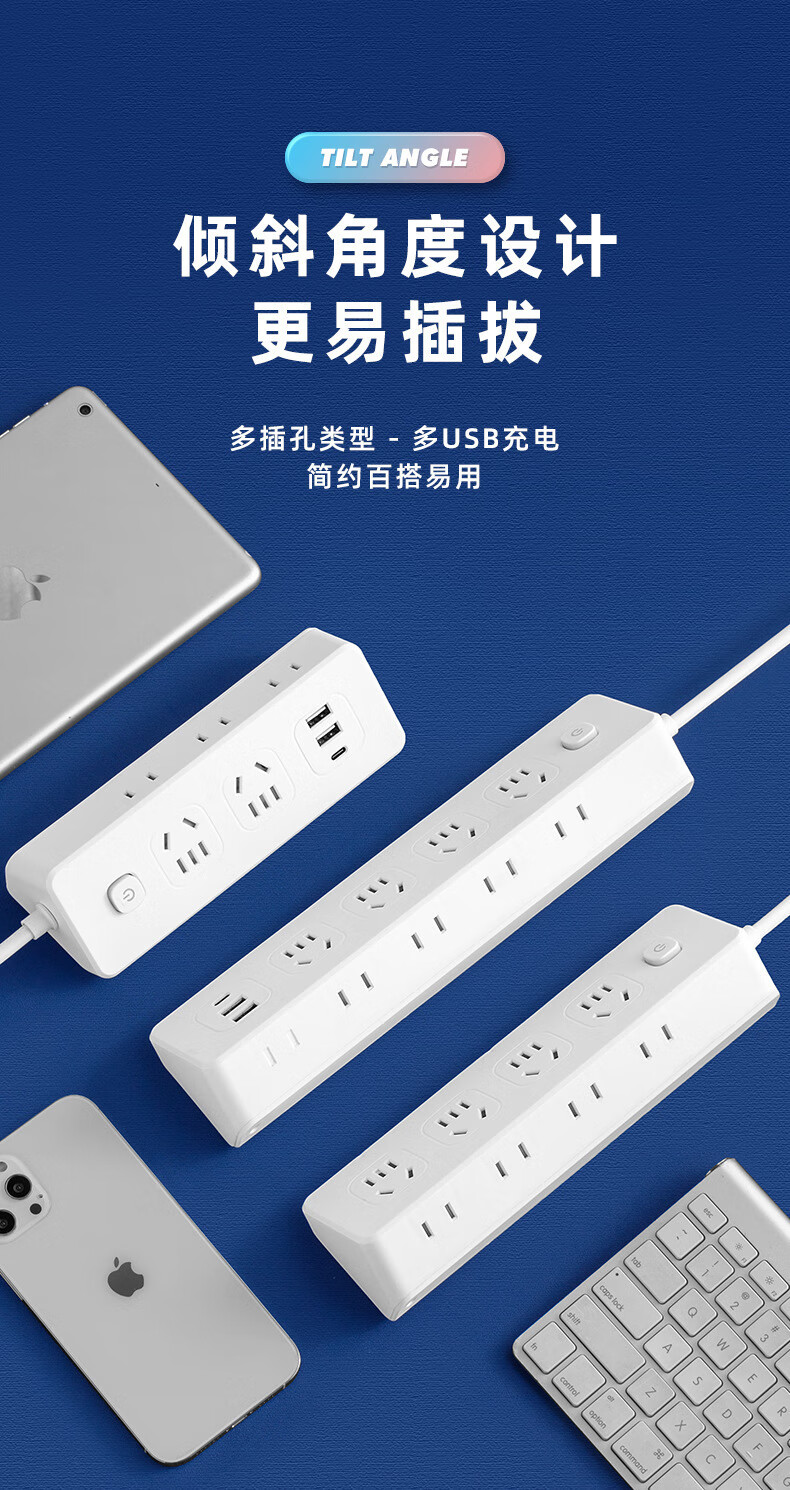 【实用】侧面插座多功能排插带线长线usb插板插线板家用学生宿舍 3位【边插】0.8米 3位