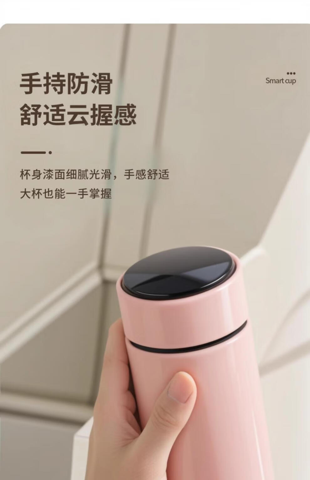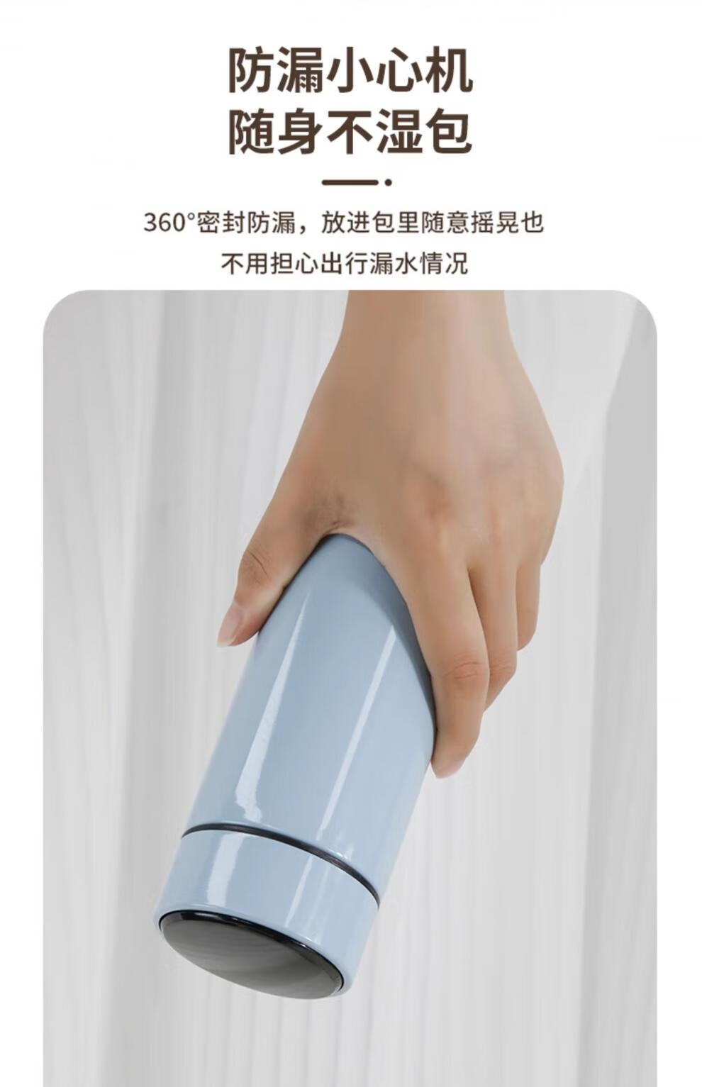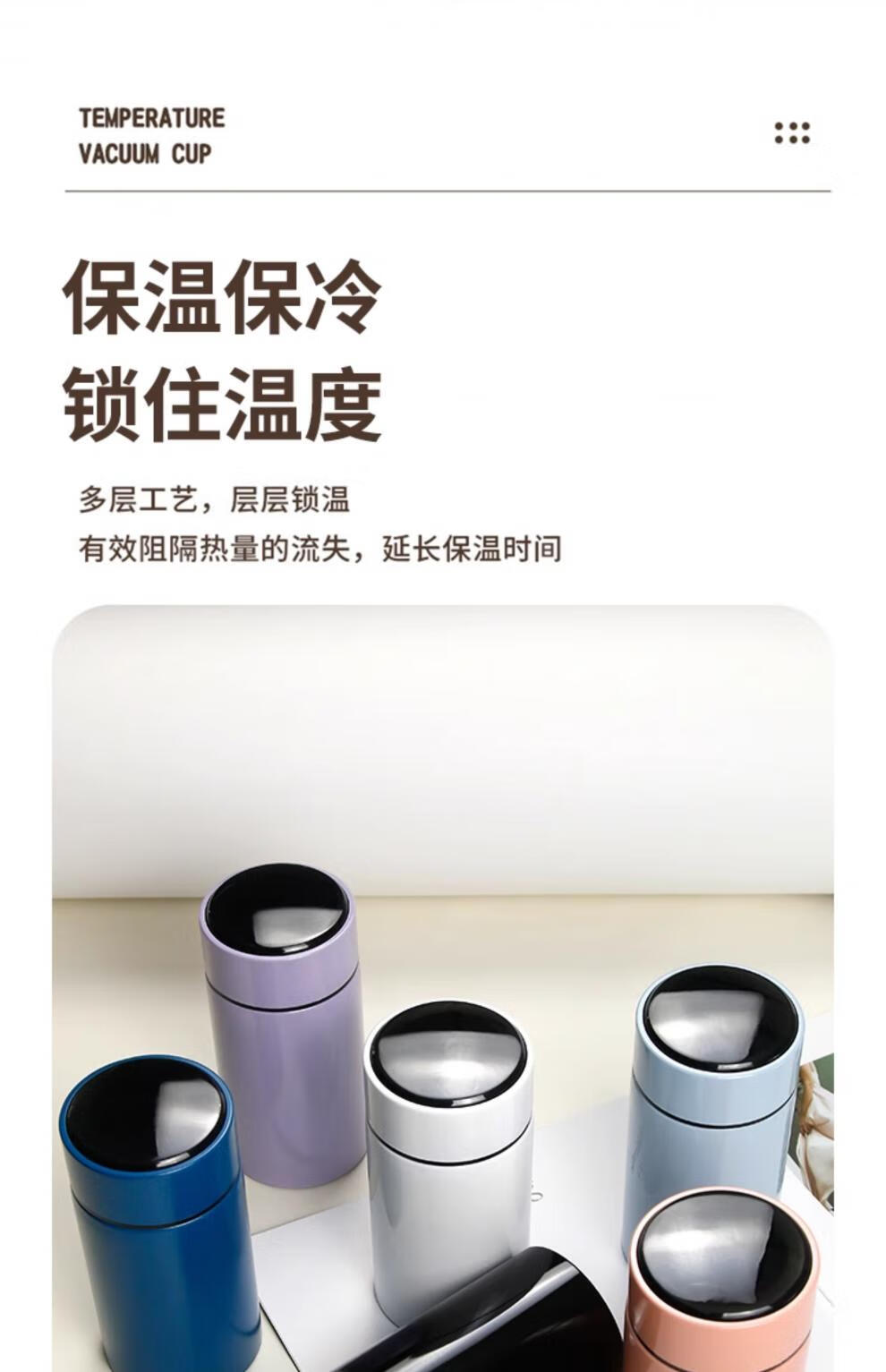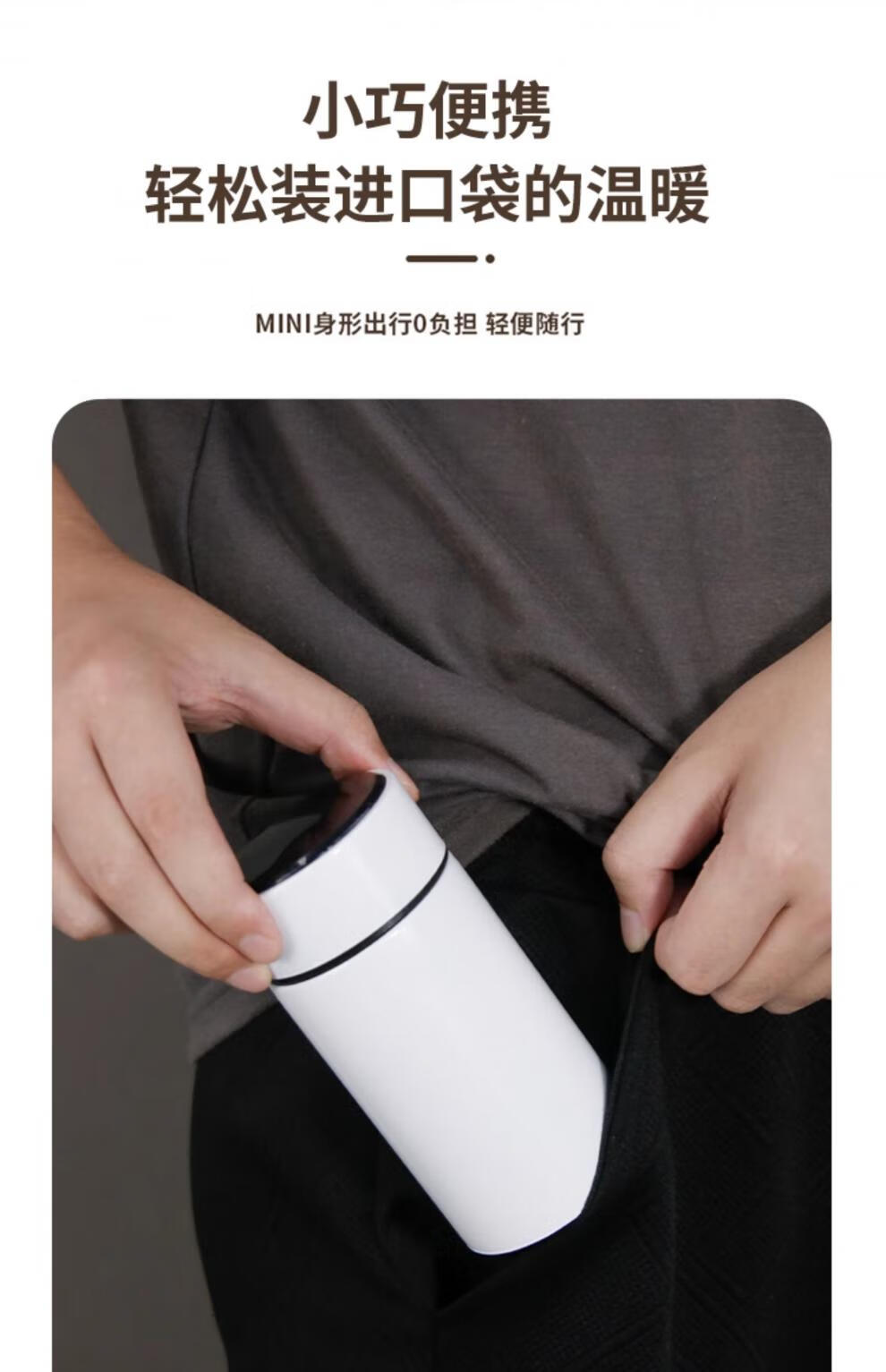 胖东来同款迷你水杯智能304不锈钢保温杯智能测温男女可携式迷你 不显示温度200毫升黑色 无茶隔