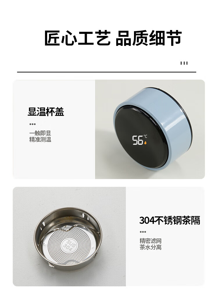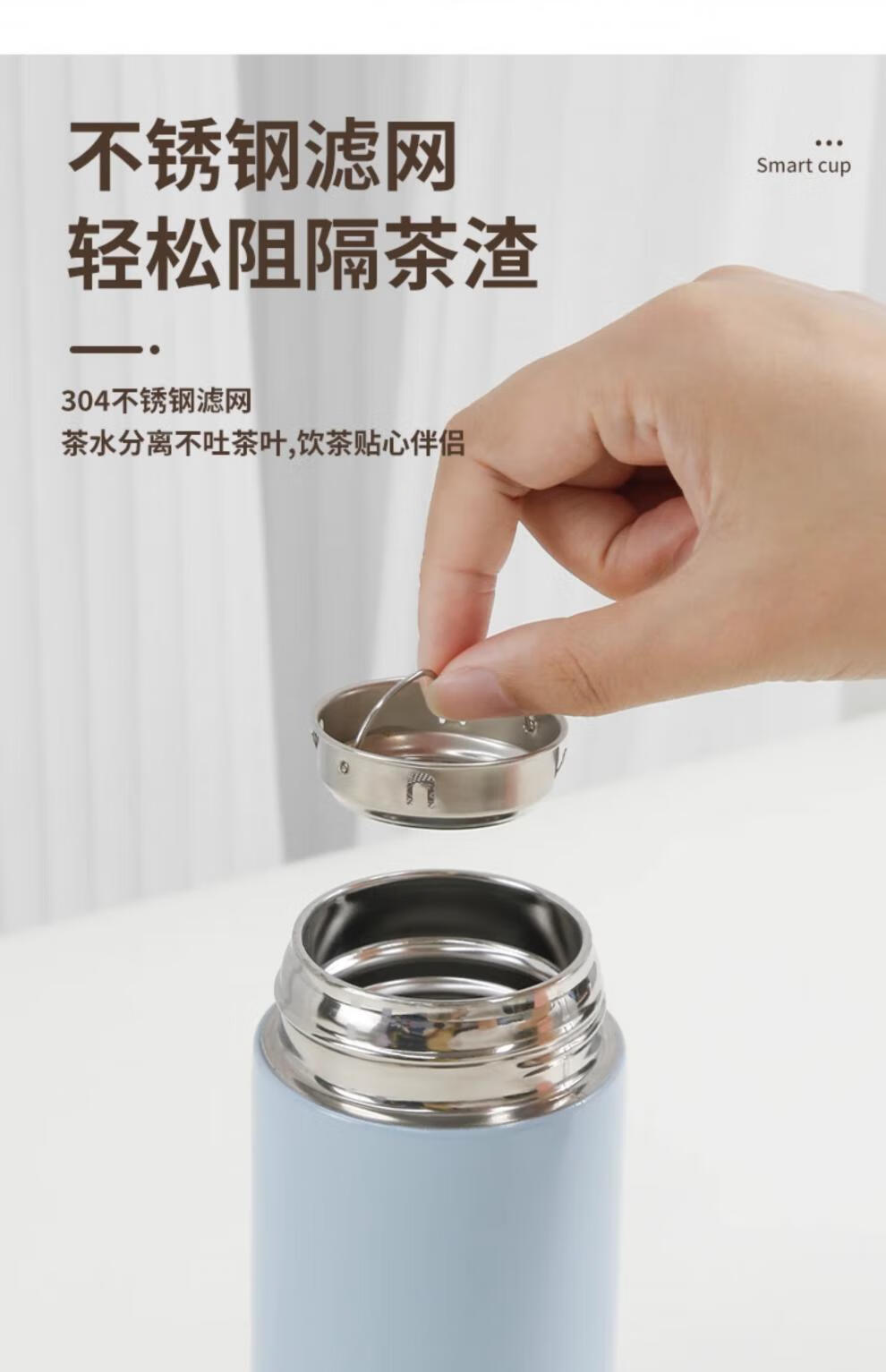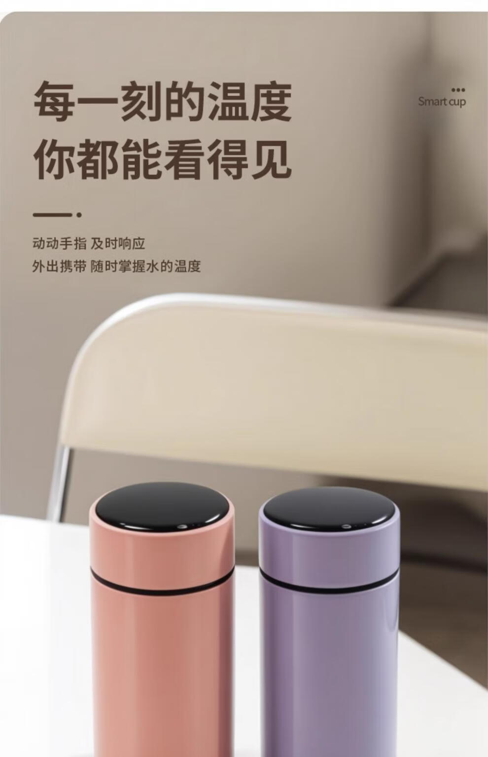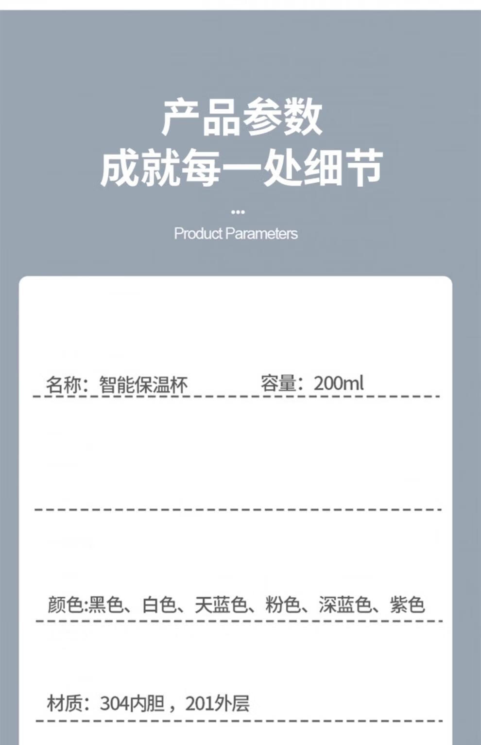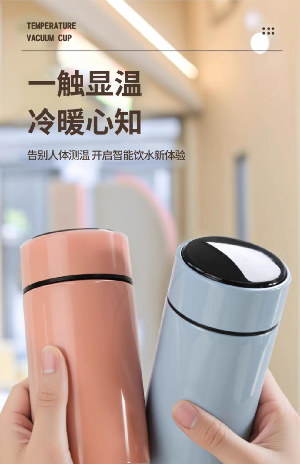 胖东来同款迷你水杯智能304不锈钢保温杯智能测温男女可携式迷你 不显示温度200毫升黑色 无茶隔