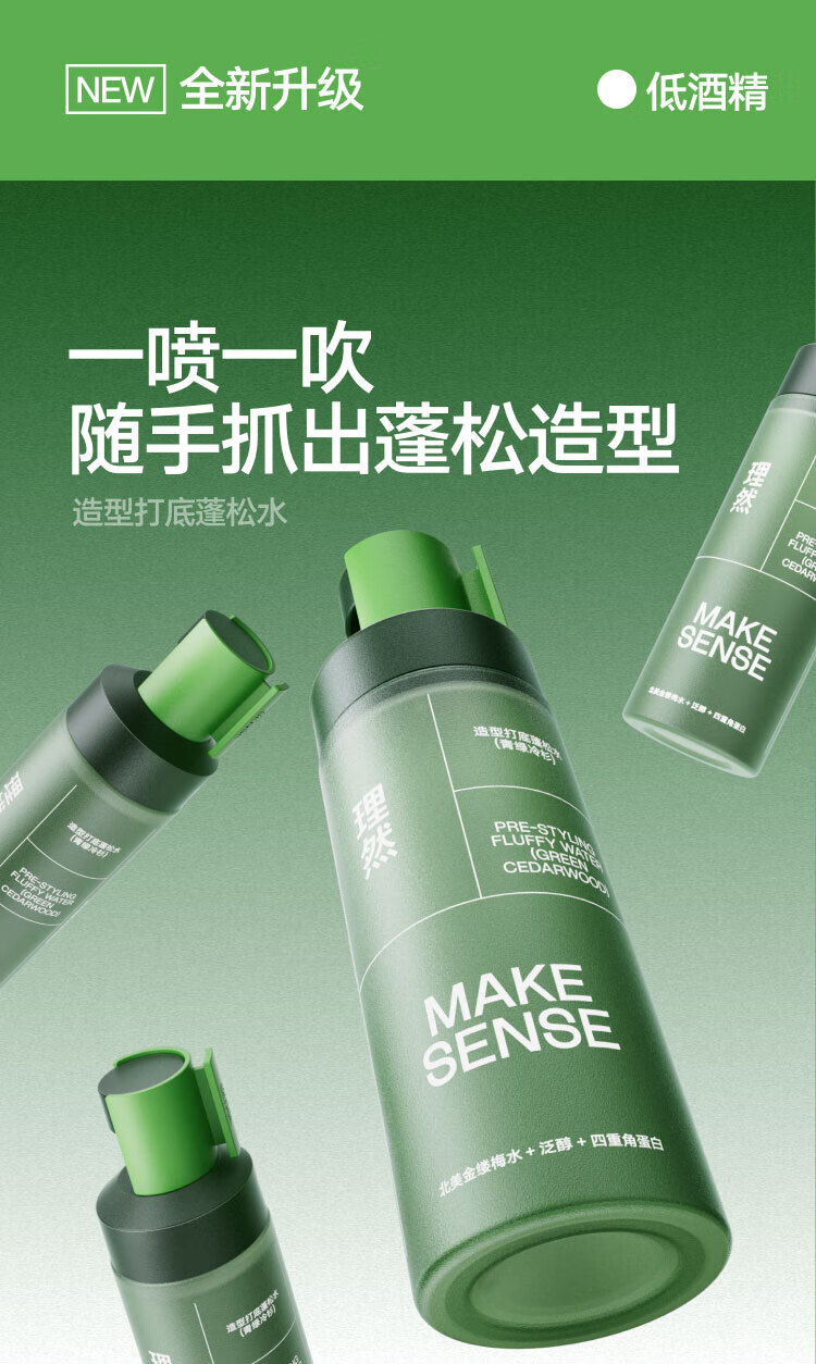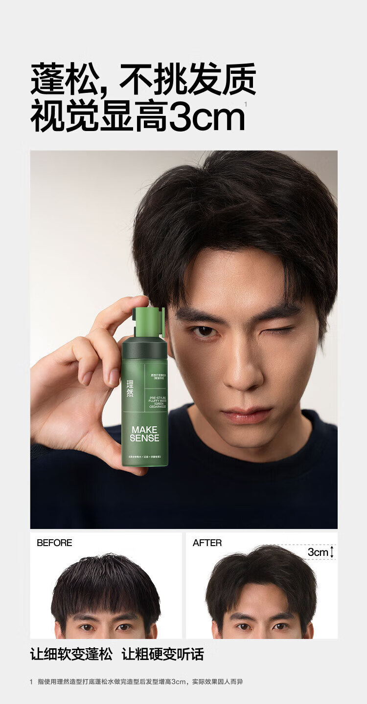 理然蓬松水头发蓬松喷雾自然高颅顶发胶持久定型喷雾清爽男女学生通用 【超值1+1】蓬松水180ml+45ml