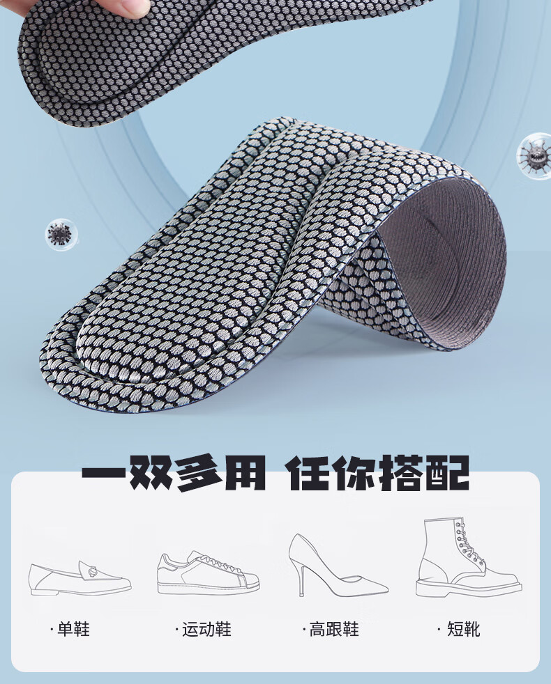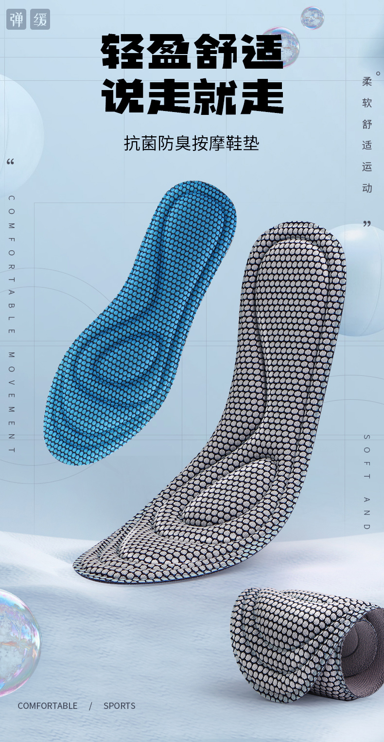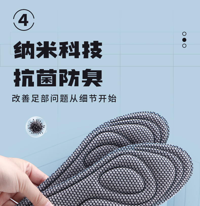 步云防臭鞋垫男按摩吸汗透气女纳米升级除臭软底舒适减震运动夏季鞋垫 4双蓝色-纳米科技除臭(可裁剪) 43-44