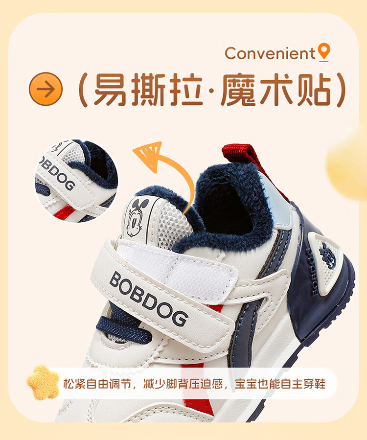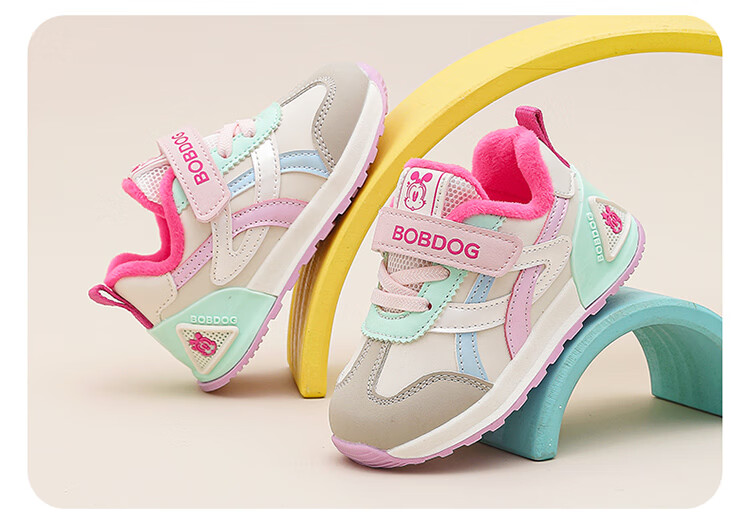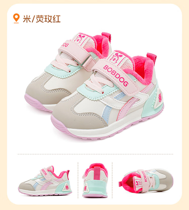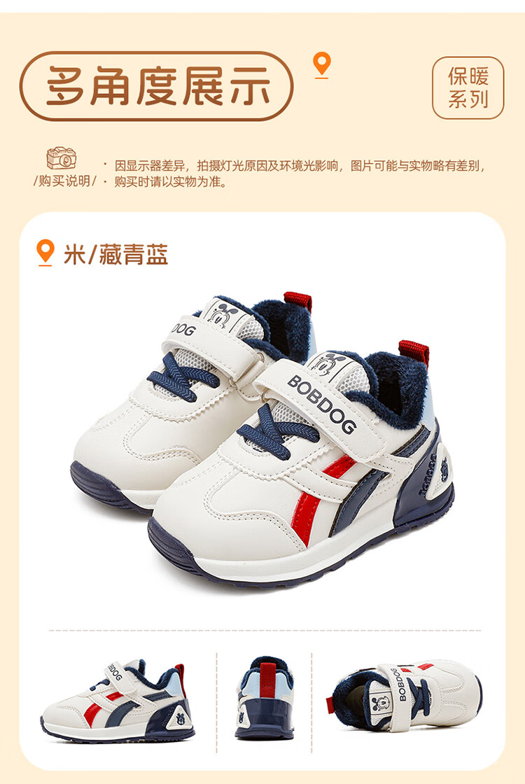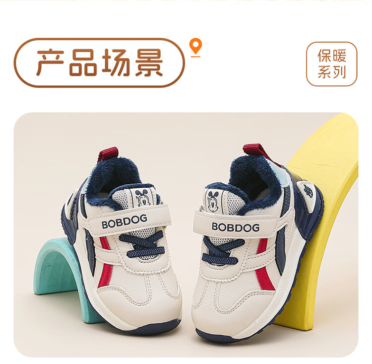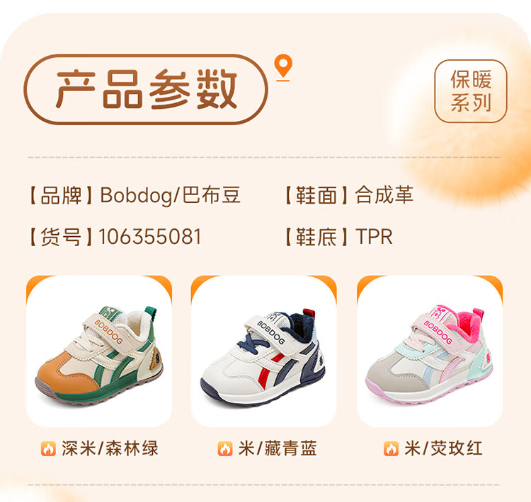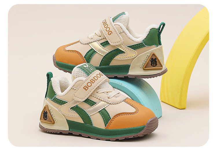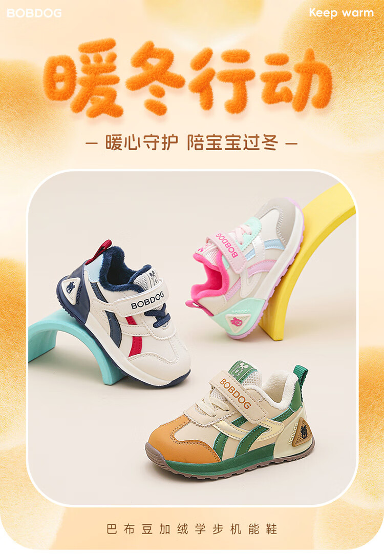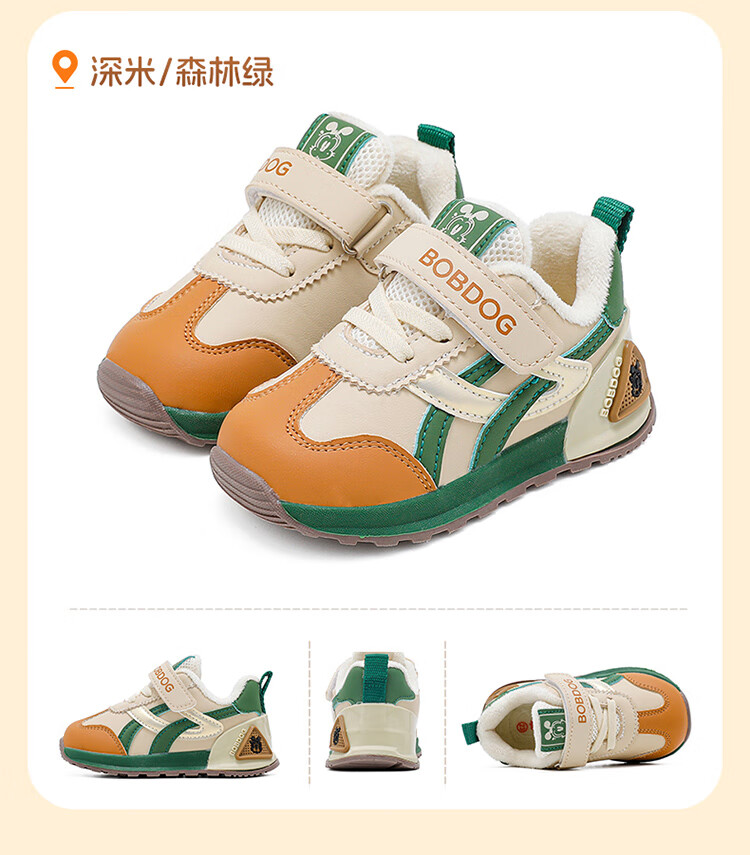 巴布豆(BOBDOG)童鞋男童冬季加绒百搭学步鞋2025舒适保暖小童机能鞋宝宝鞋女 深米/森林绿(加绒) 26 适合脚长15.2cm