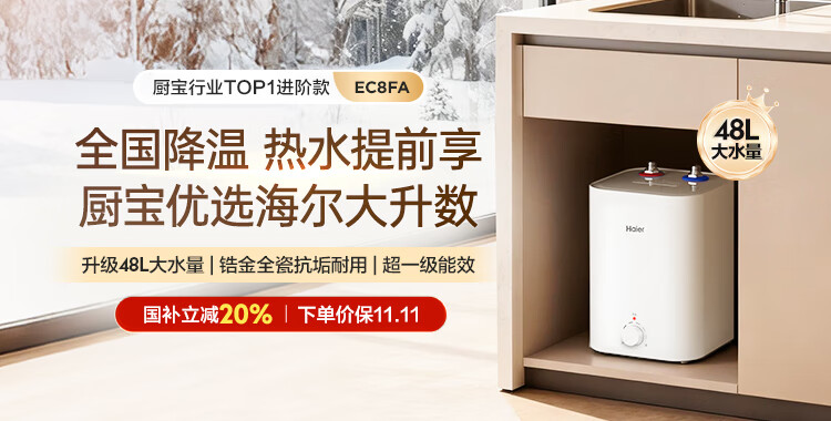 海尔(Haier)国家补贴20%小厨宝电热水器5升 EC5FA 一级能效京东自营 1750W速热家用储水式厨房台下小型热水宝