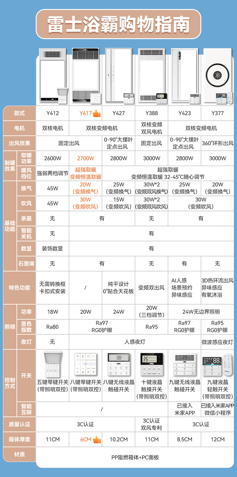 雷士(NVC)风暖浴霸超薄变频恒温杀菌人感夜灯Y417浴室暖风照明排风换气一体