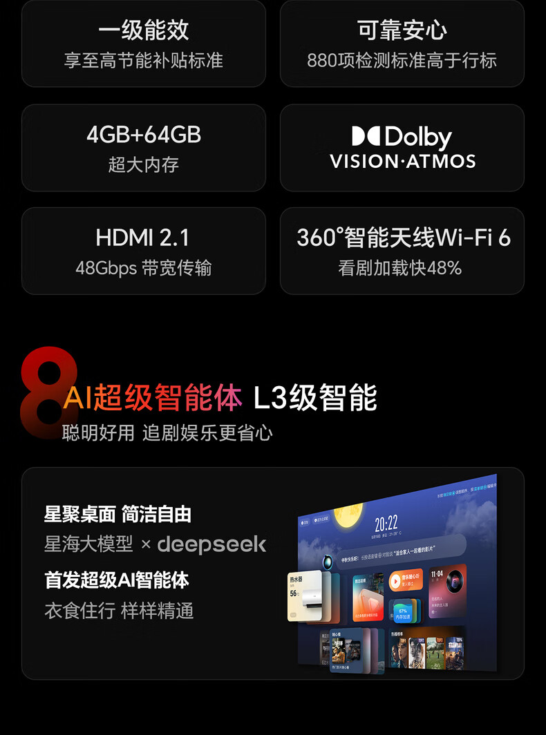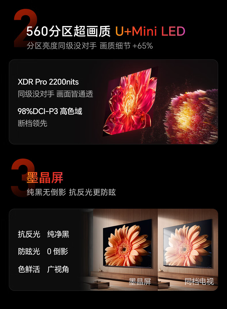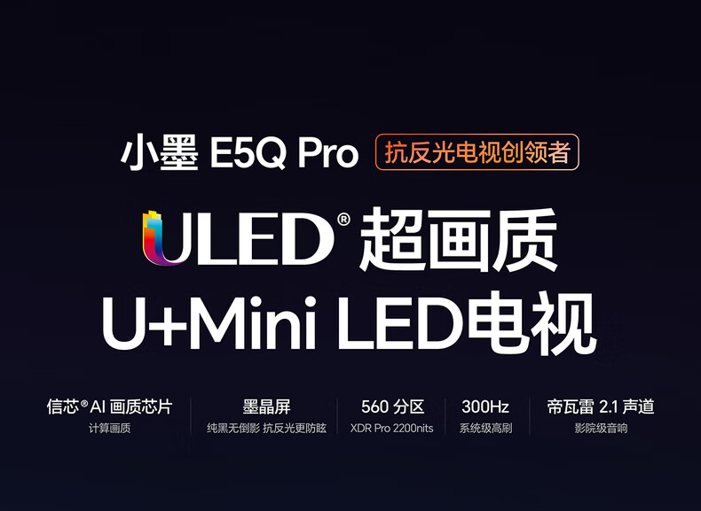 海信电视小墨E5Q Pro 65英寸 560分区U+MiniLED 信芯芯片抗反光防眩光墨晶屏国家补贴世界杯65E5Q-PRO 65英寸