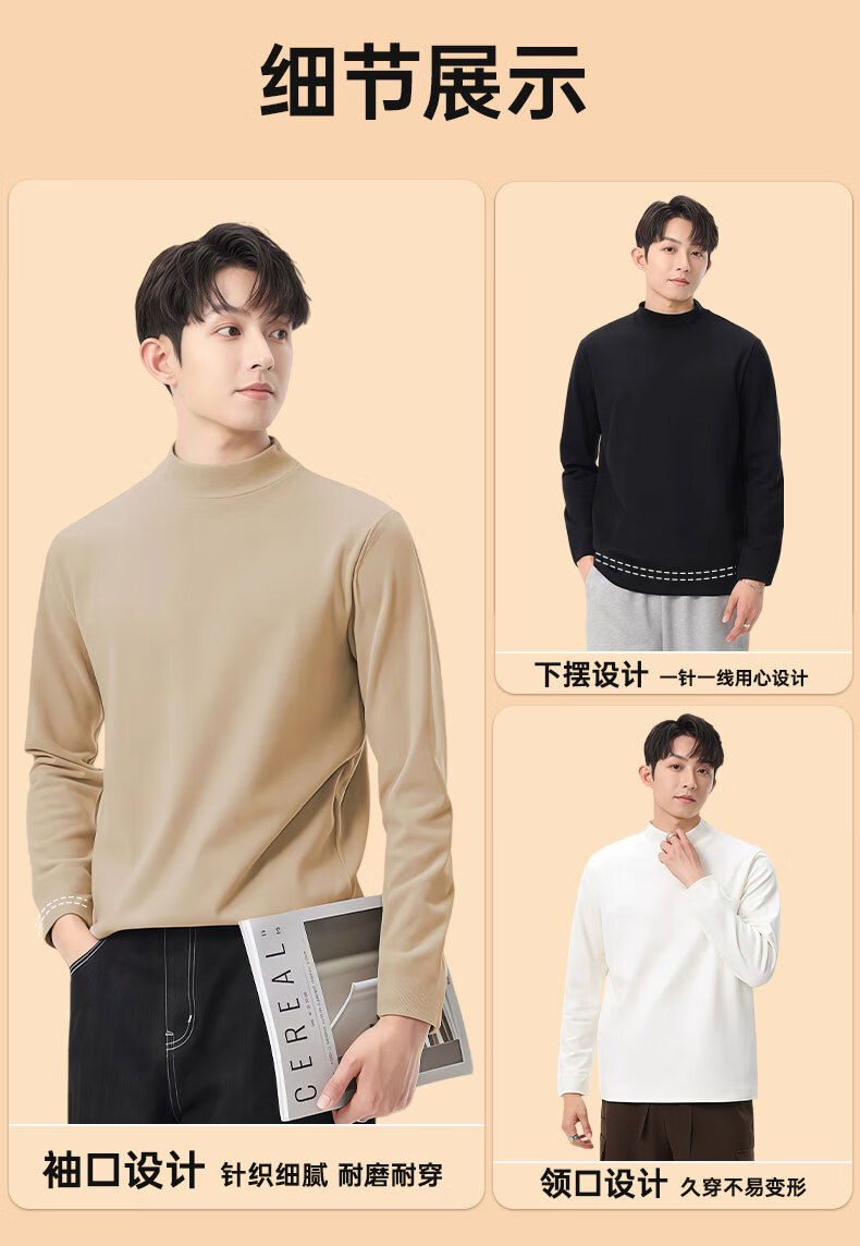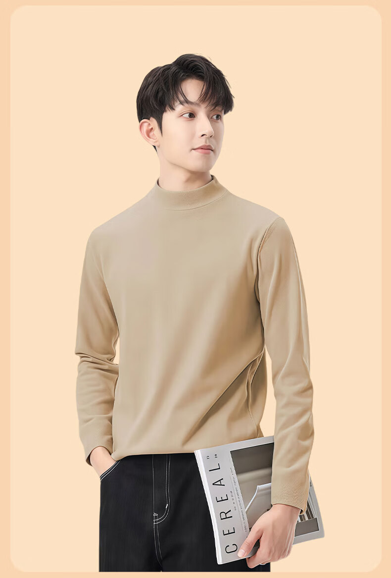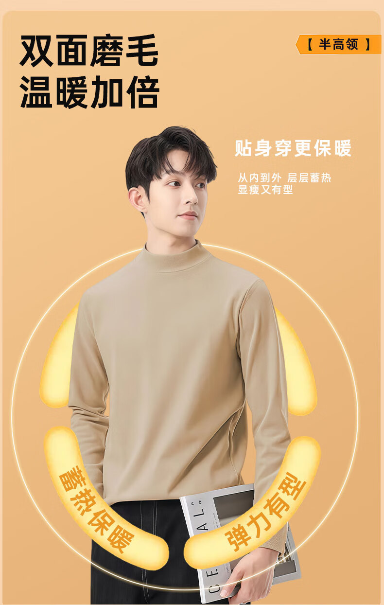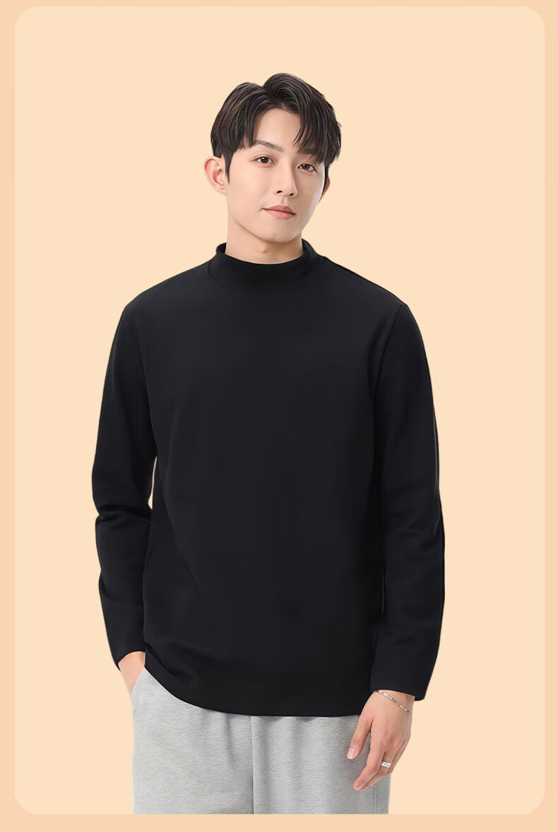 红豆打底衫2025新款男士秋冬类德绒加厚保暖内搭长袖t恤 黑色 2XL