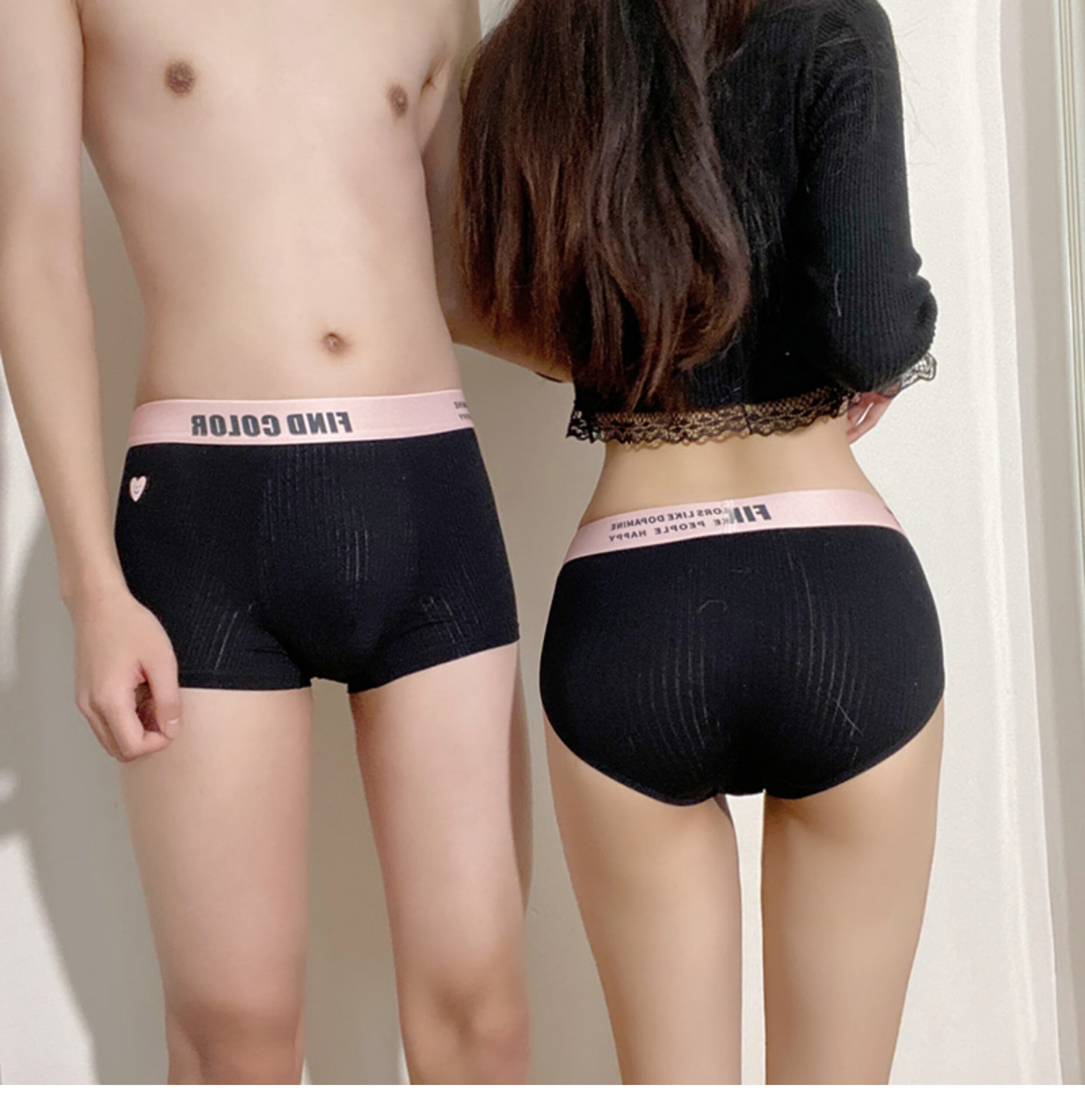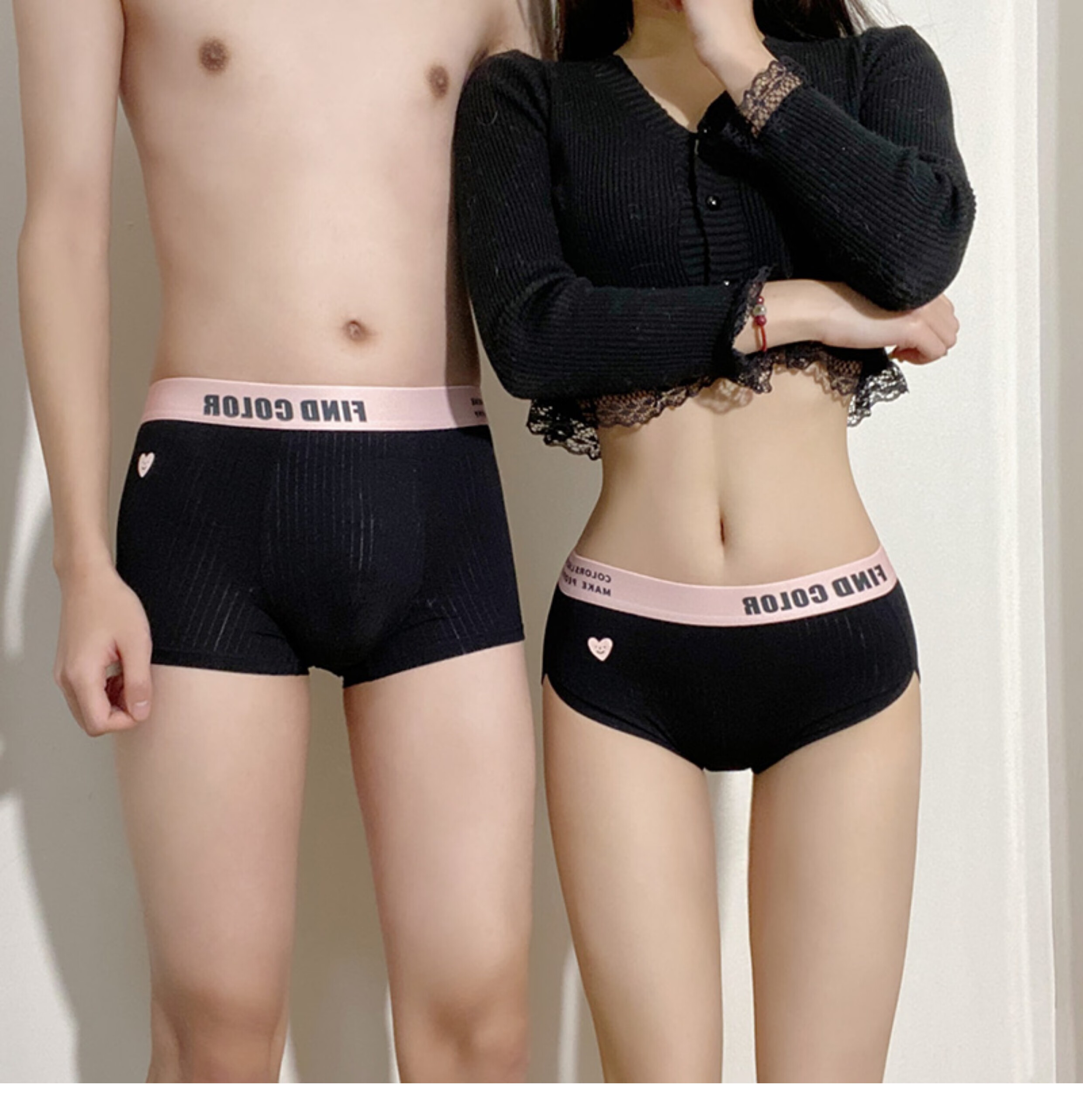 羅亨士情侣内裤男女同款一男一女性感套装2024新款运动高开叉夫妻底裤衩 黑色 女XL 男XXXL