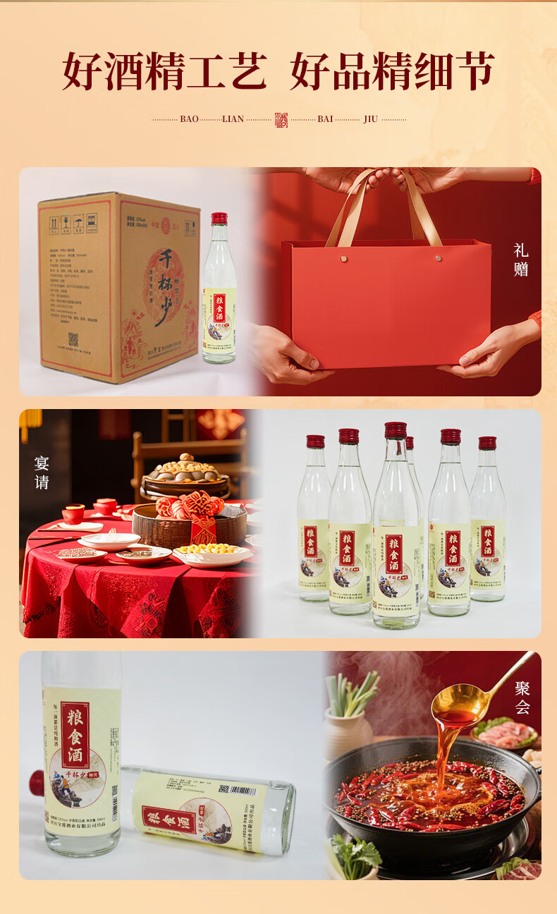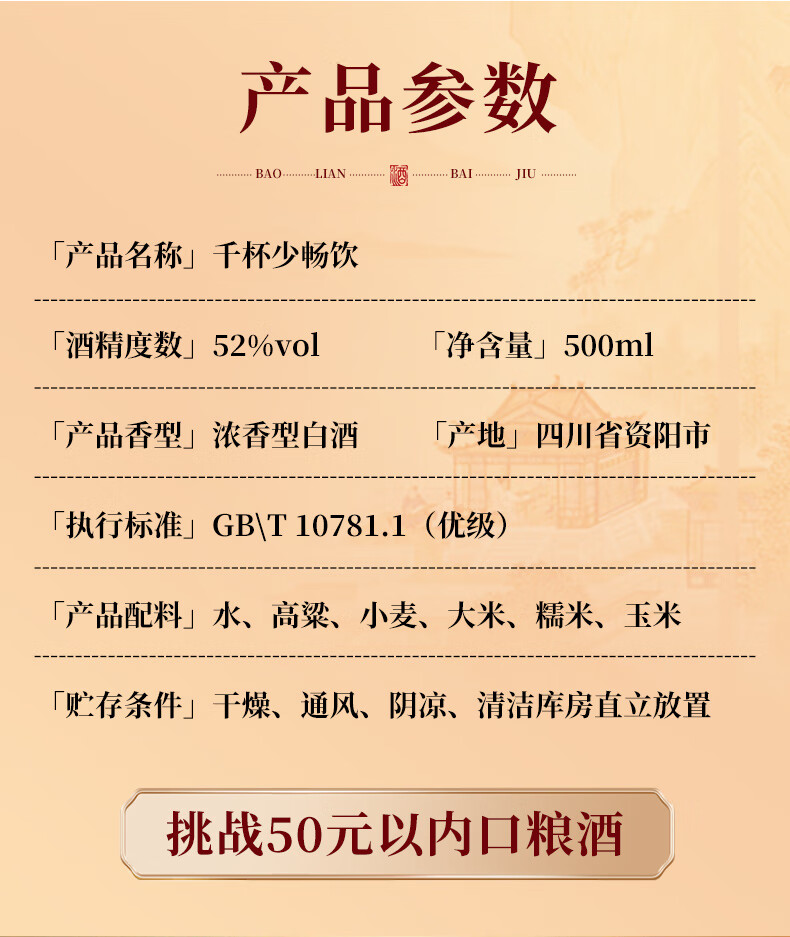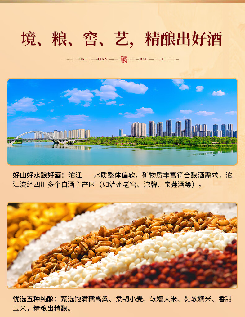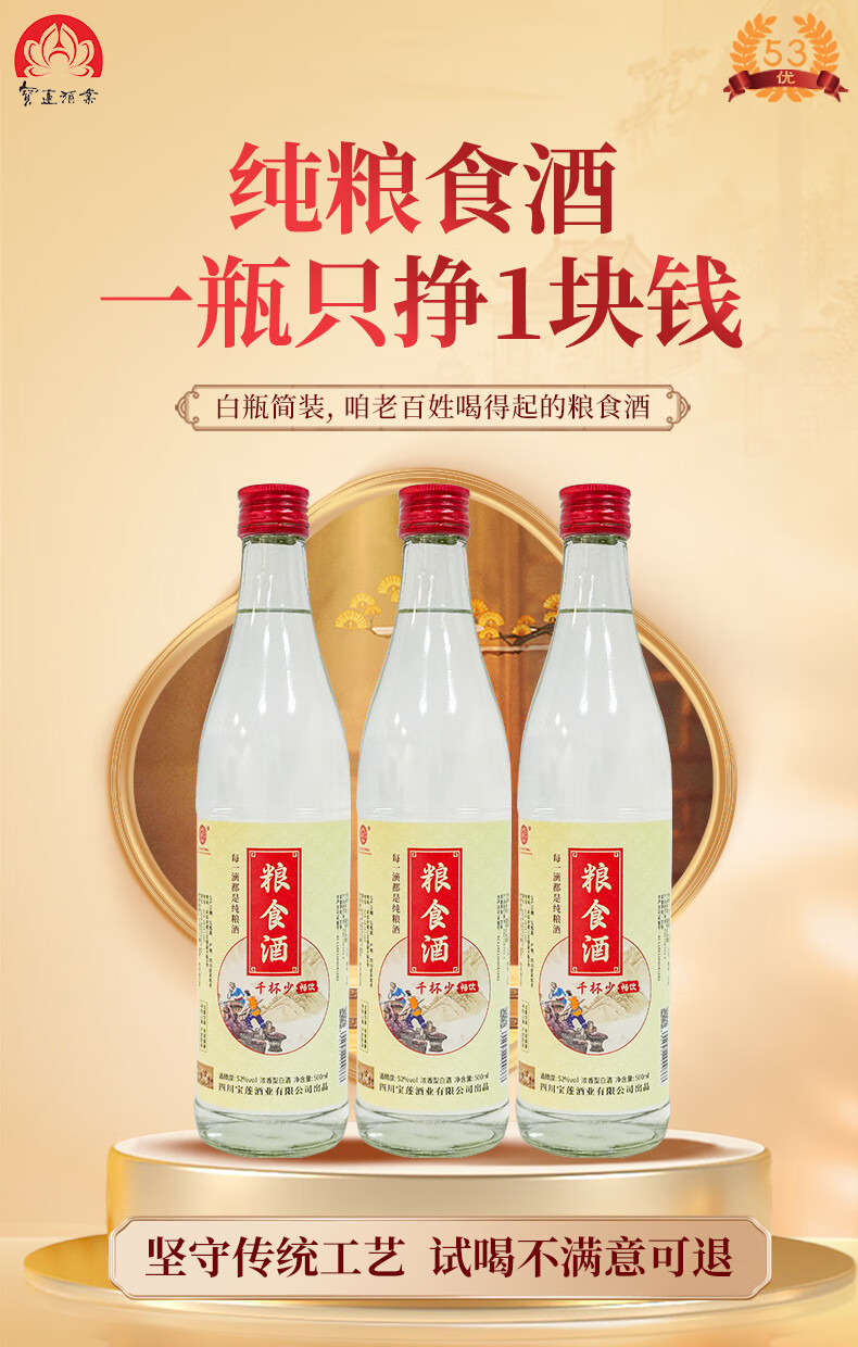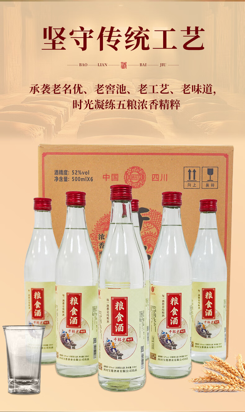 寶蓮浓香型白酒畅饮52度四川口粮酒500ml纯粮食酒节日送礼 52度 500mL 1瓶