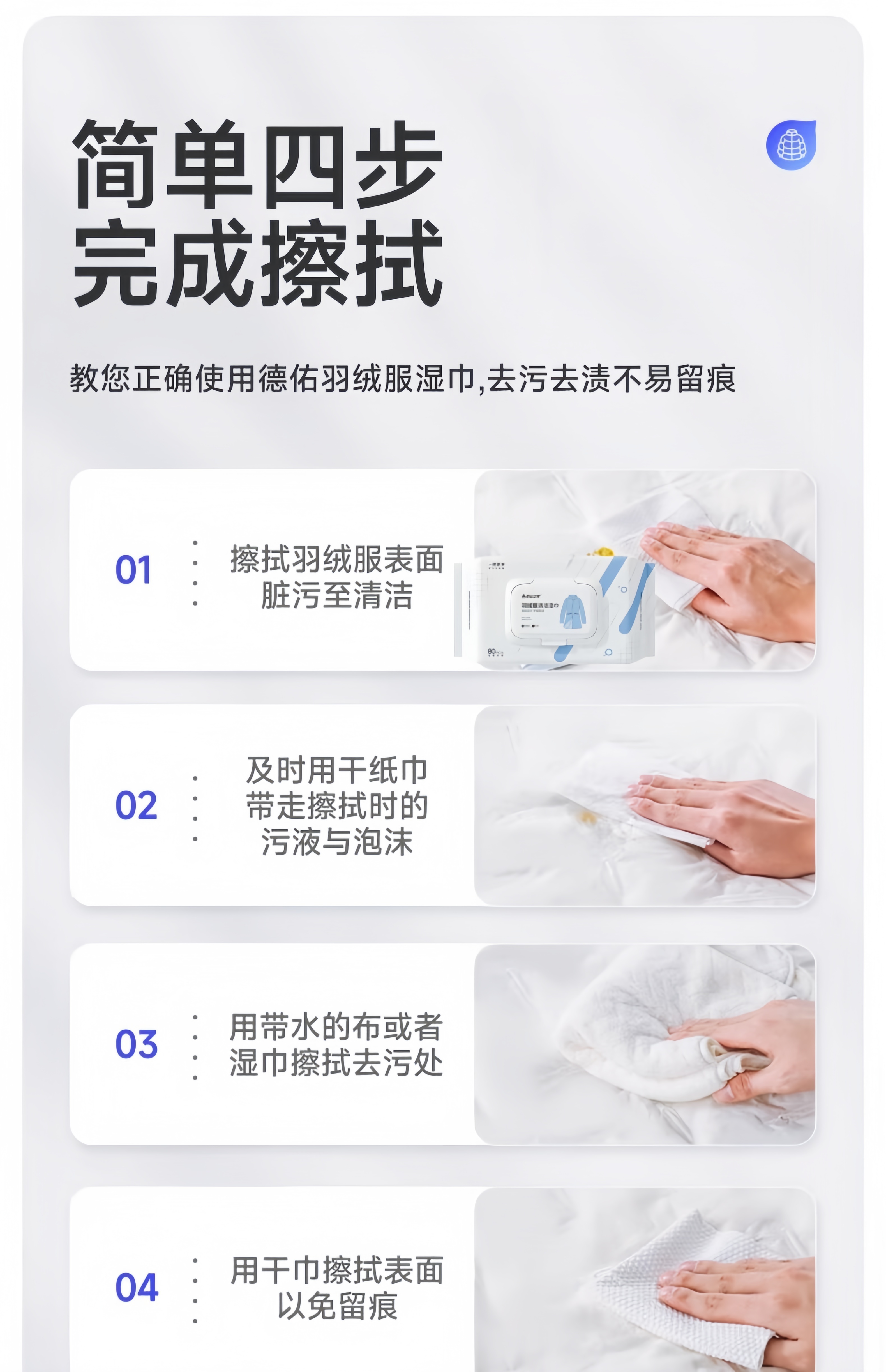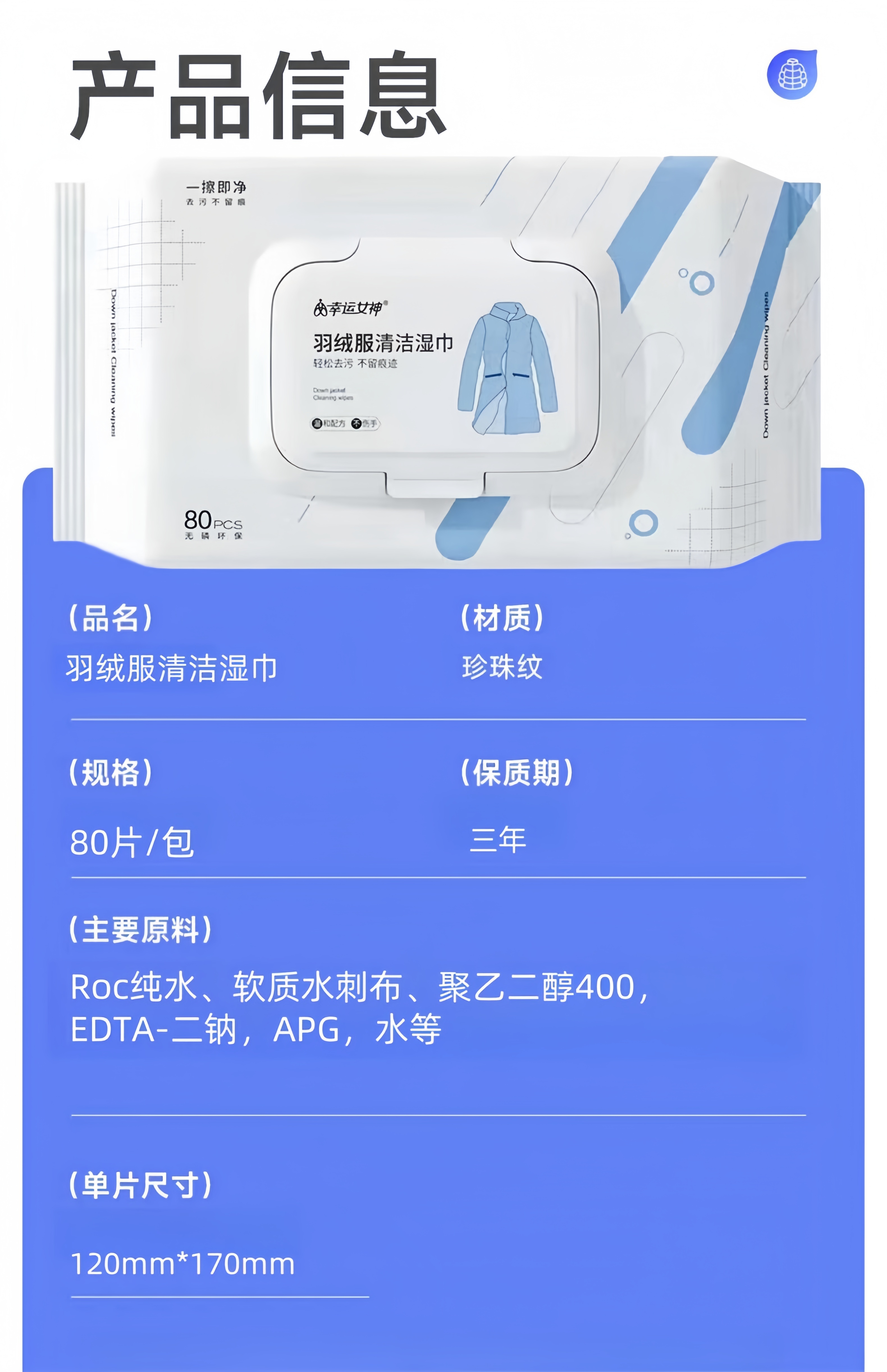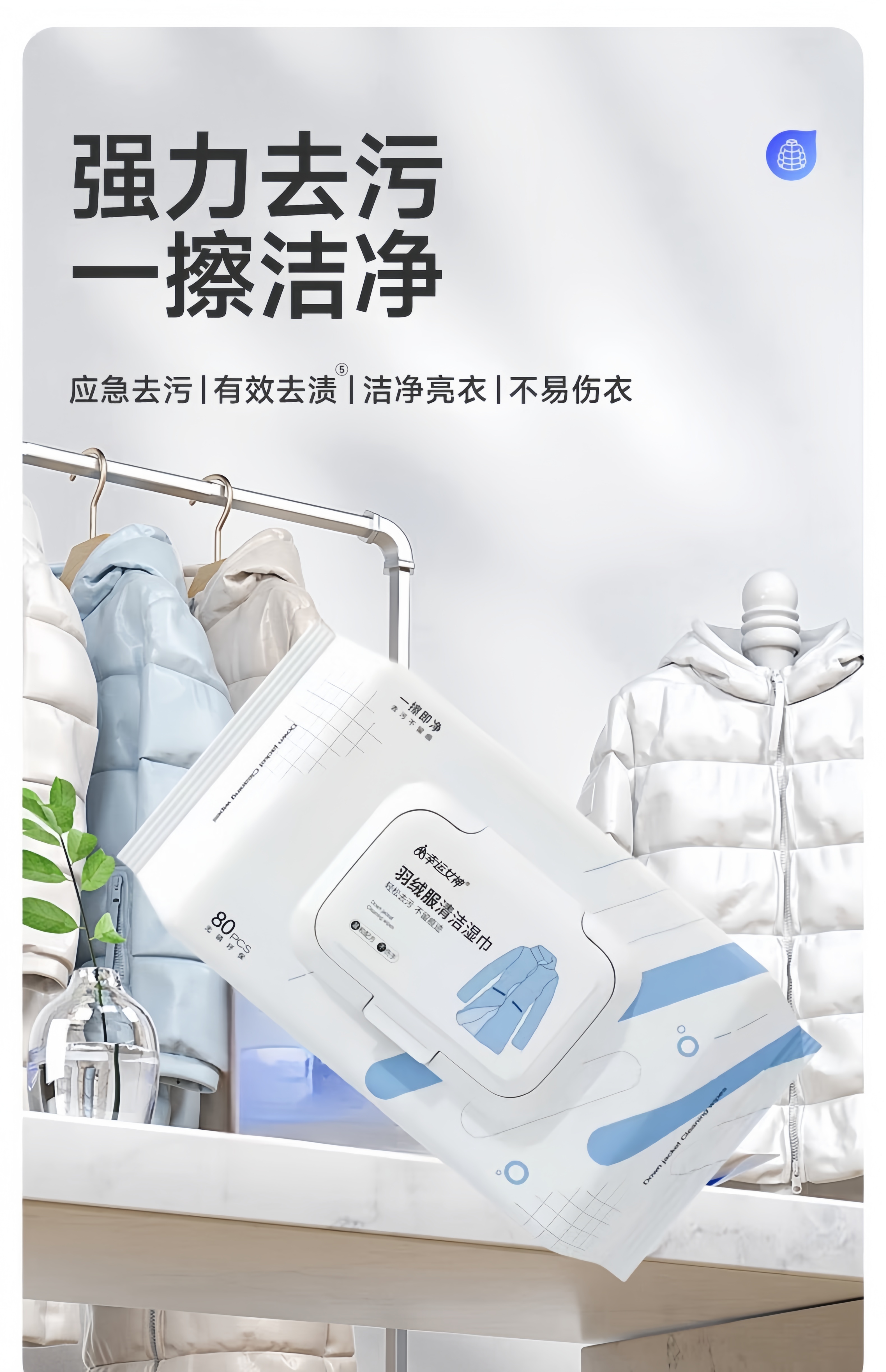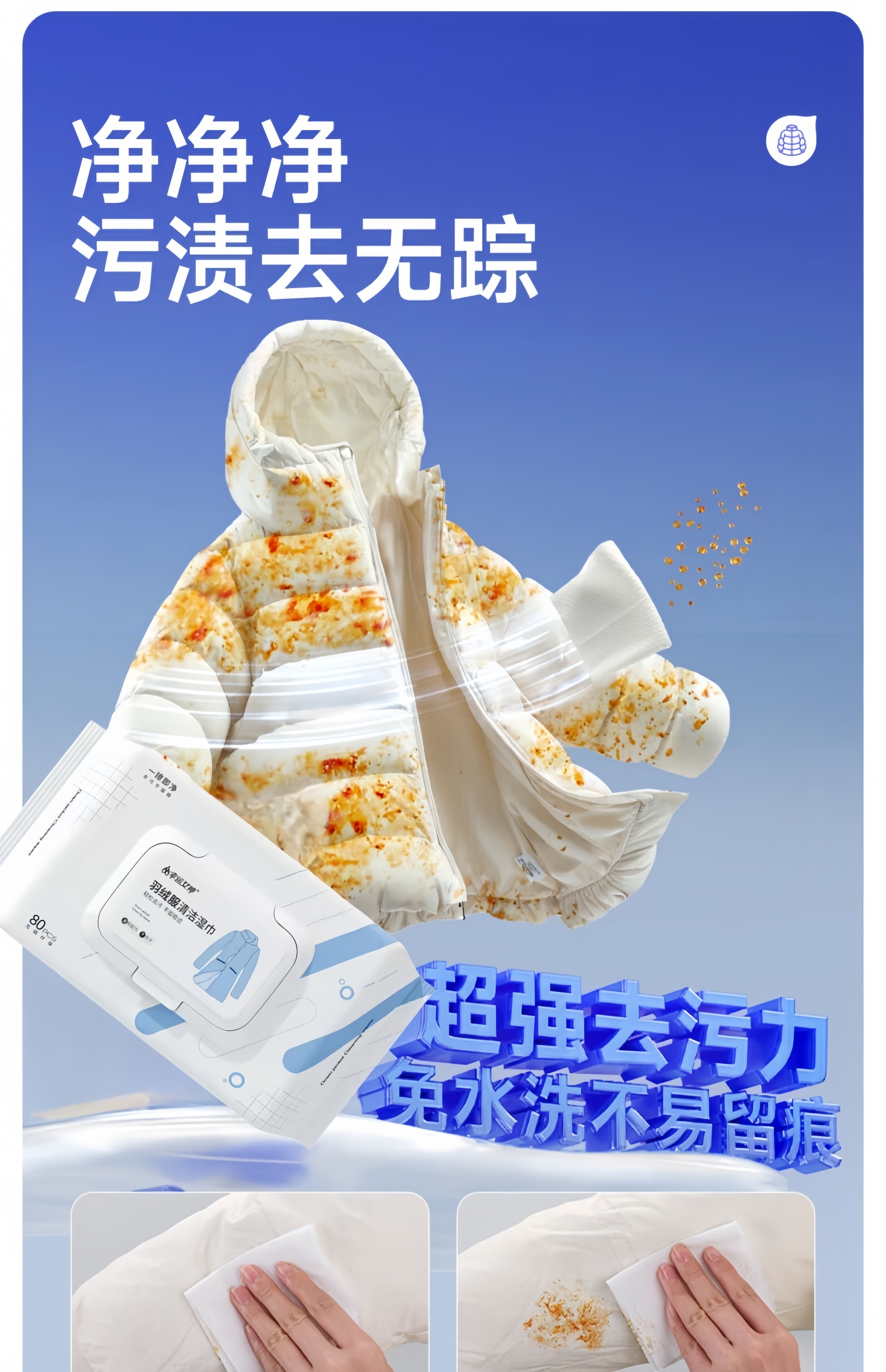锐洲羽绒服清洁湿巾清洗剂去污免水洗洗羽绒服的湿纸巾去污去油渍 1包装【80片】