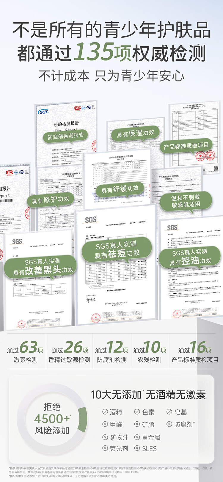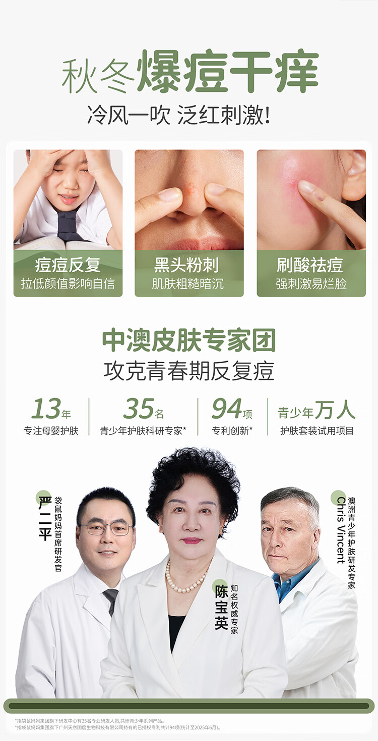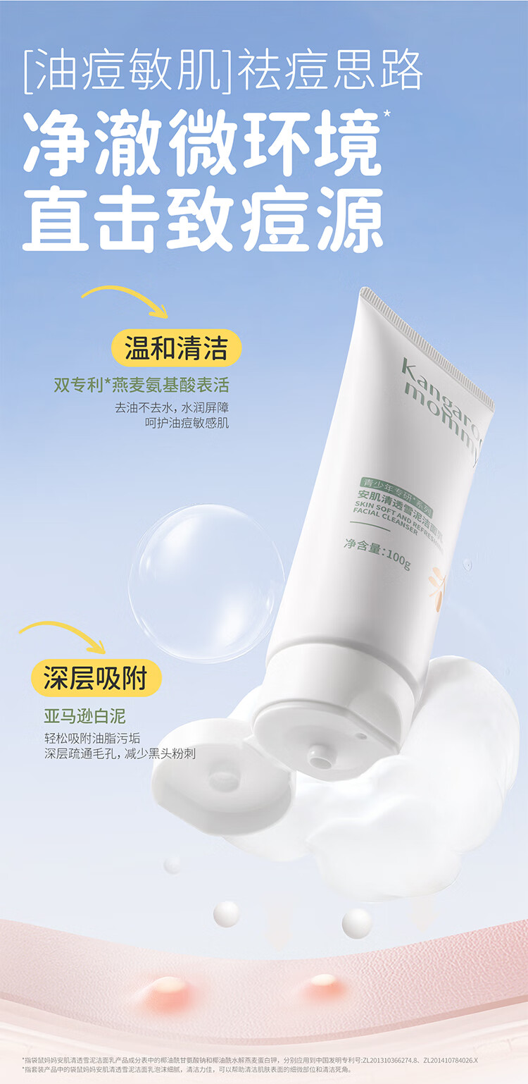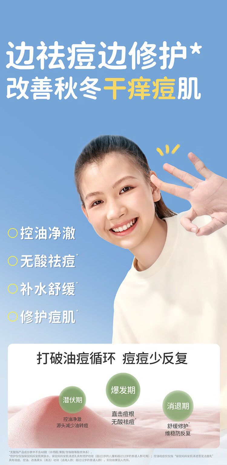 袋鼠妈妈青少年护肤套装 控油祛痘洁水乳三件套12-18岁男女孩青春期学生