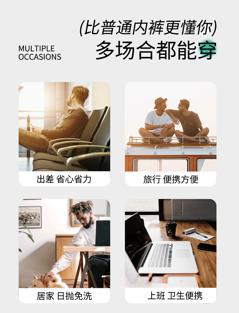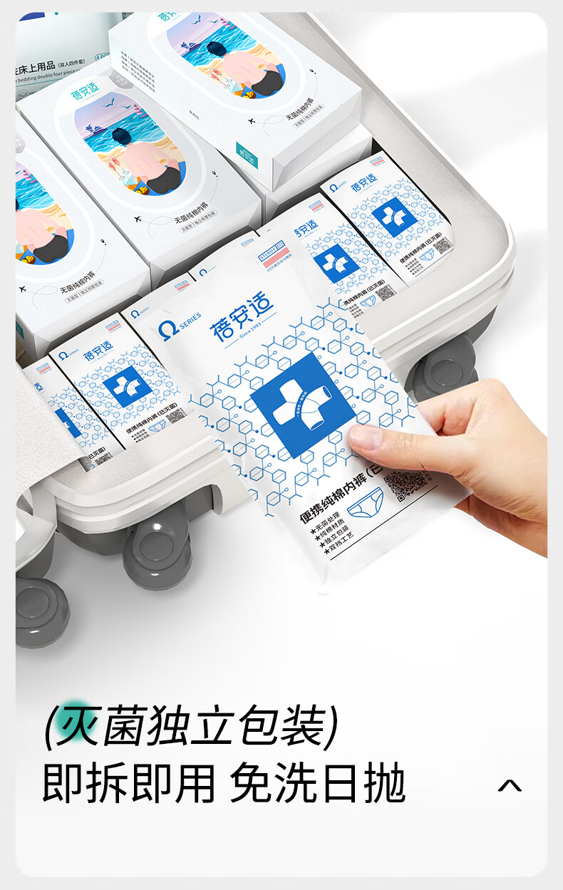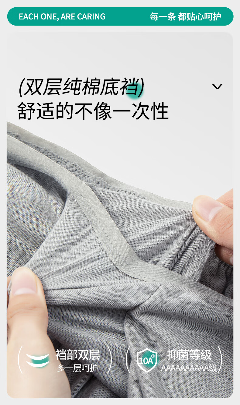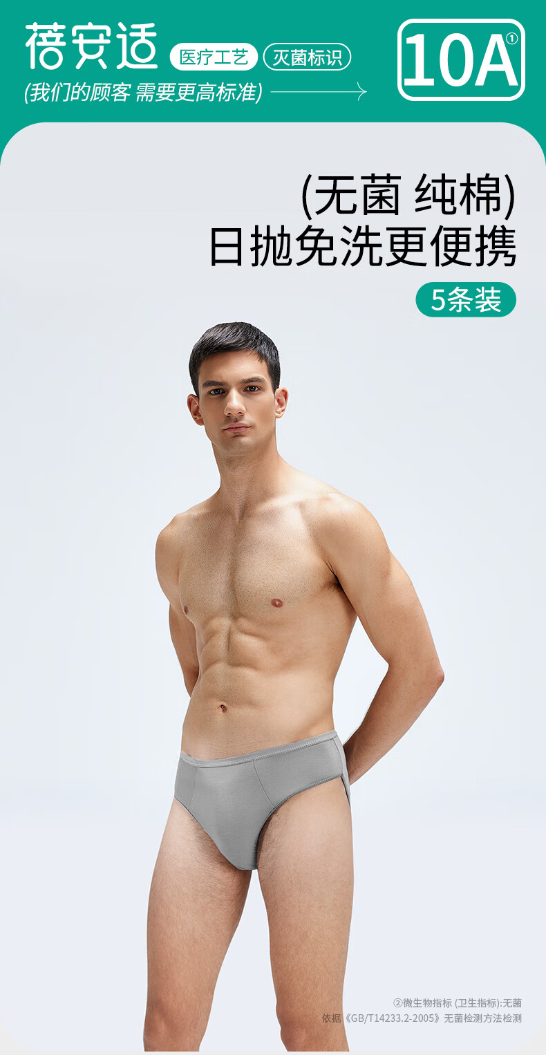 蓓安适一次性内裤男士纯棉旅行便携独立包装免洗短裤 男灰5条装3XL号