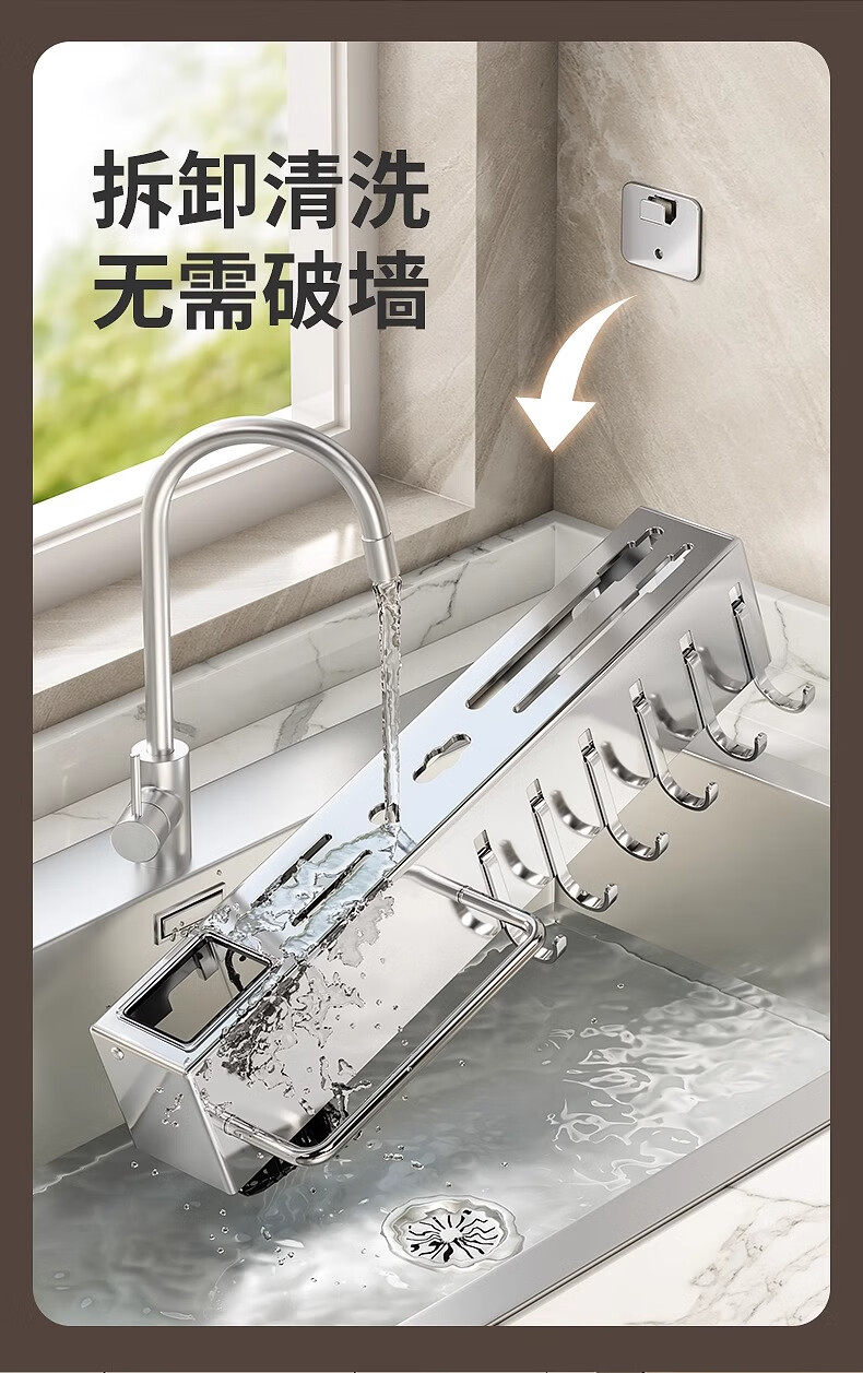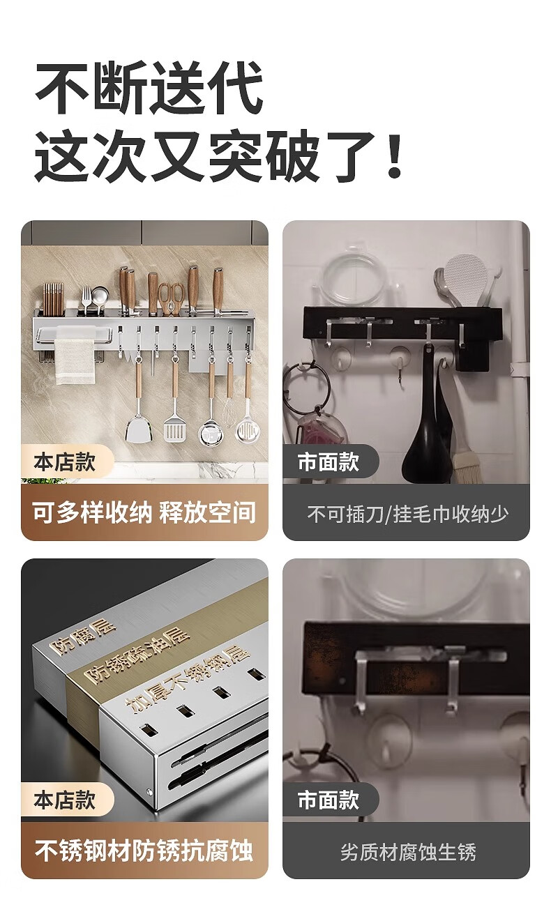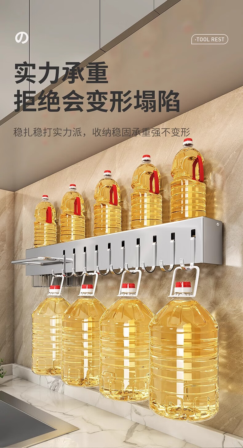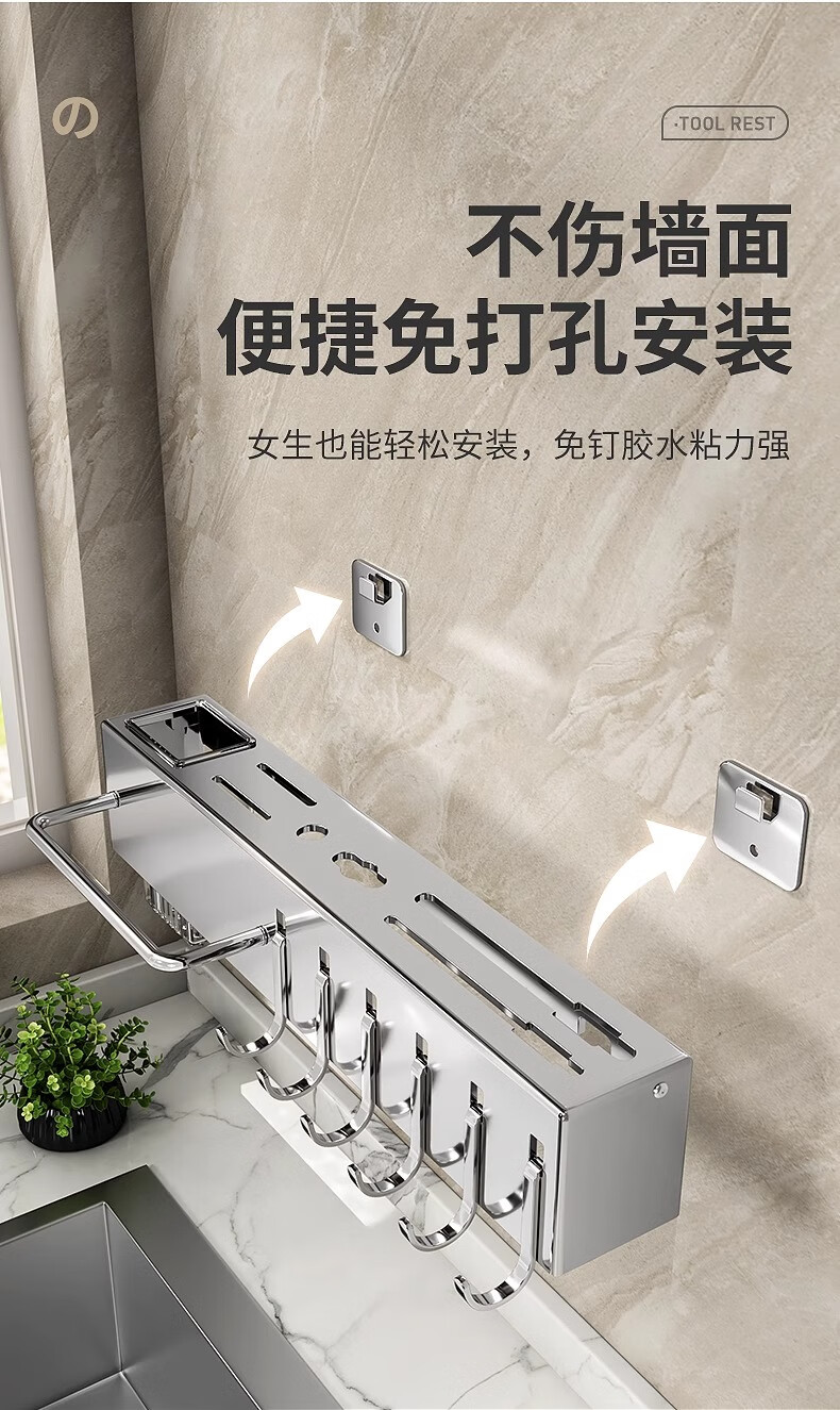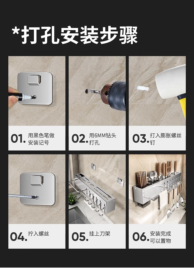 简漾枪灰吸盘刀架厨房置物架厨房多功能免打孔刀具筷子收纳架子 枪灰.【吸盘款】30cm刀架+单筷筒