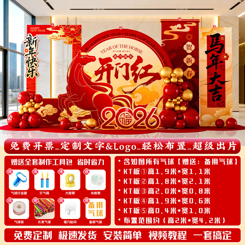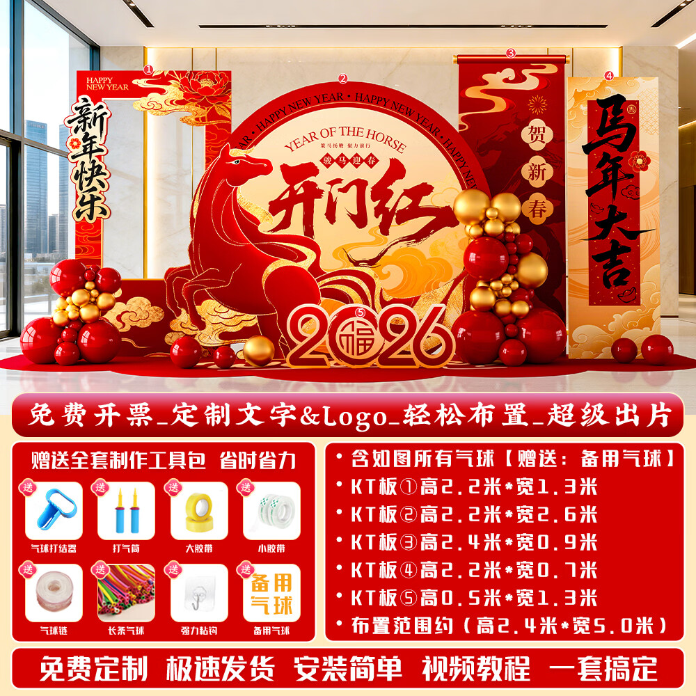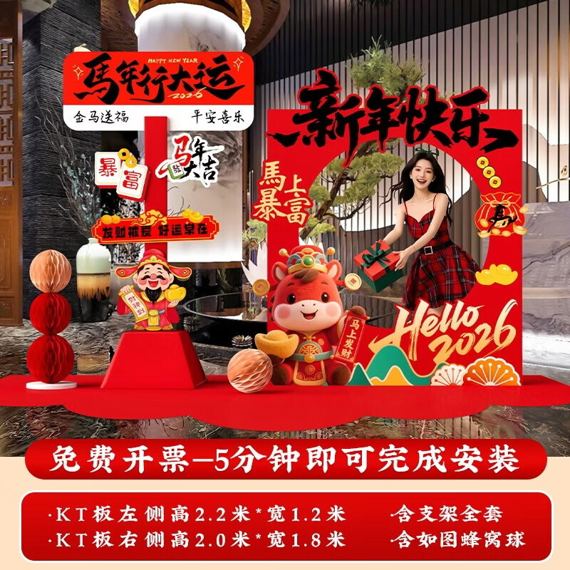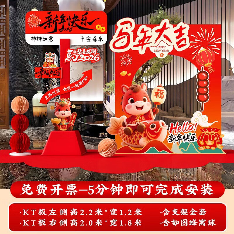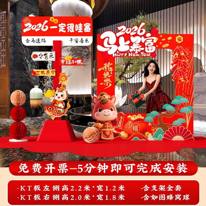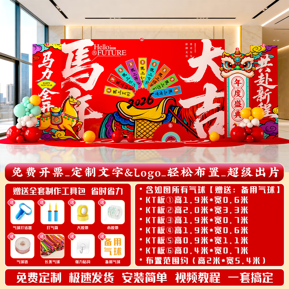 玺飞年会现场布置2026马年场景氛围感装饰新年公司会场签到背景墙kt板 次日达/80款年会背景墙【高2.0*宽4.8】