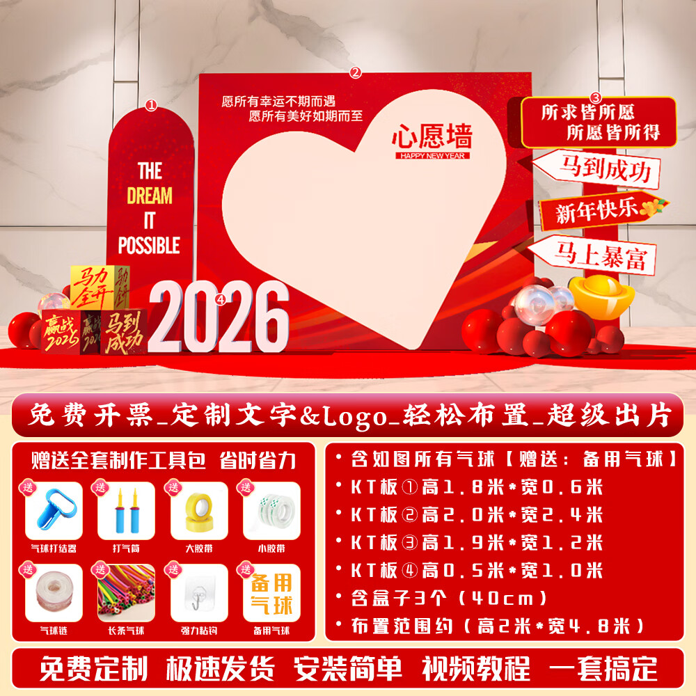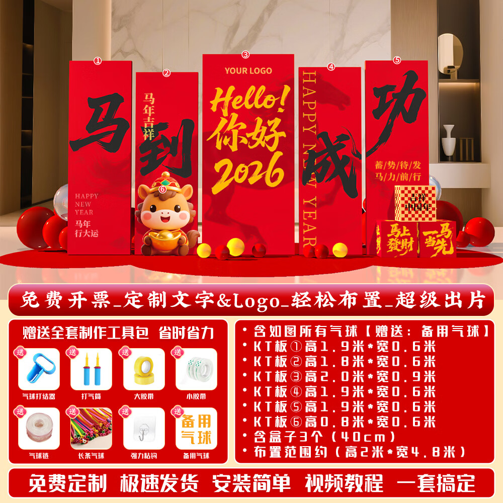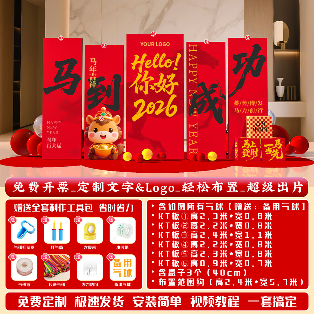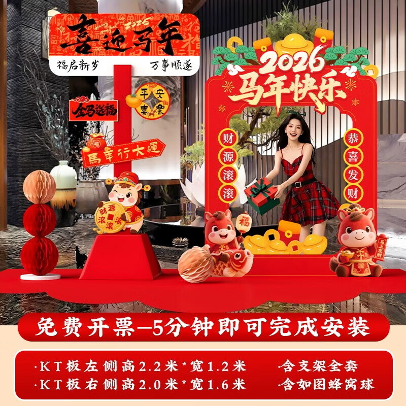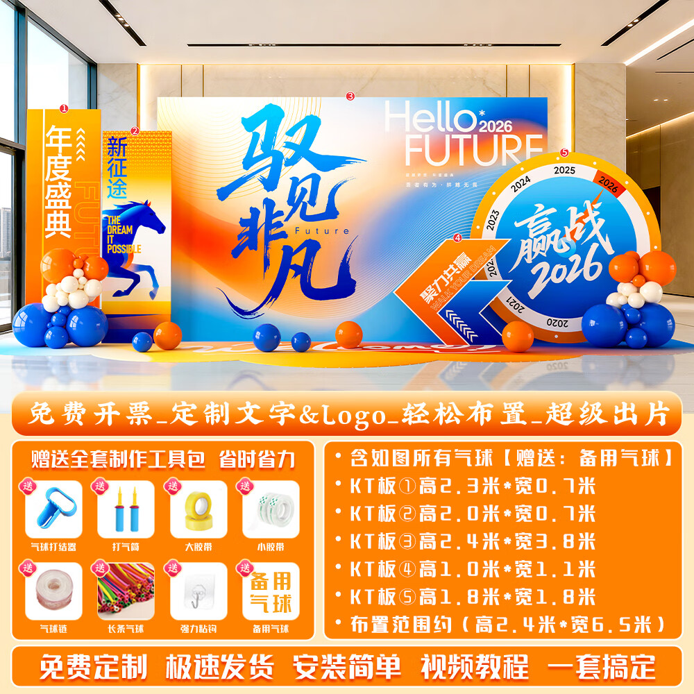 玺飞年会现场布置2026马年场景氛围感装饰新年公司会场签到背景墙kt板 次日达/80款年会背景墙【高2.0*宽4.8】