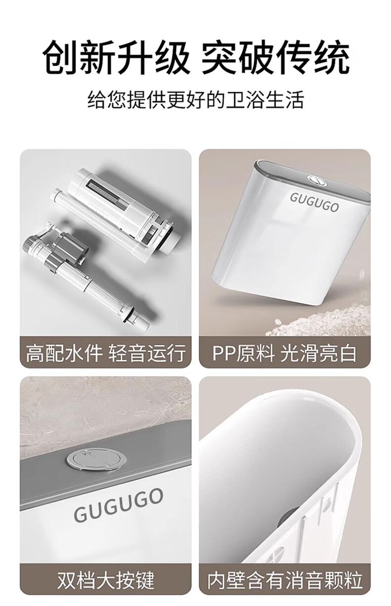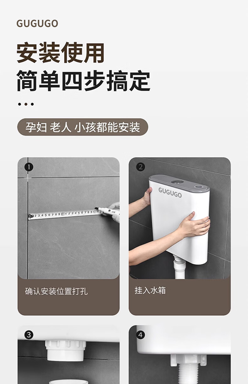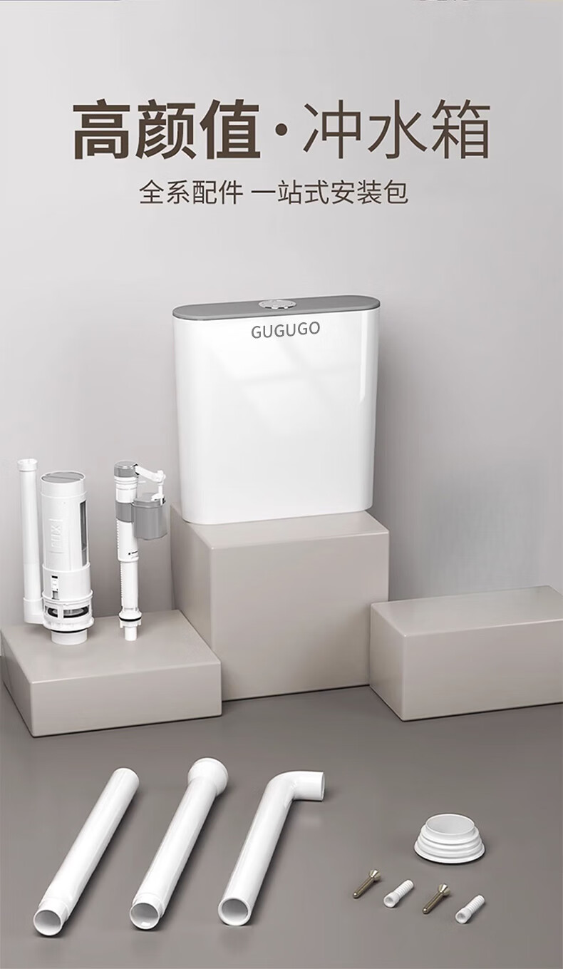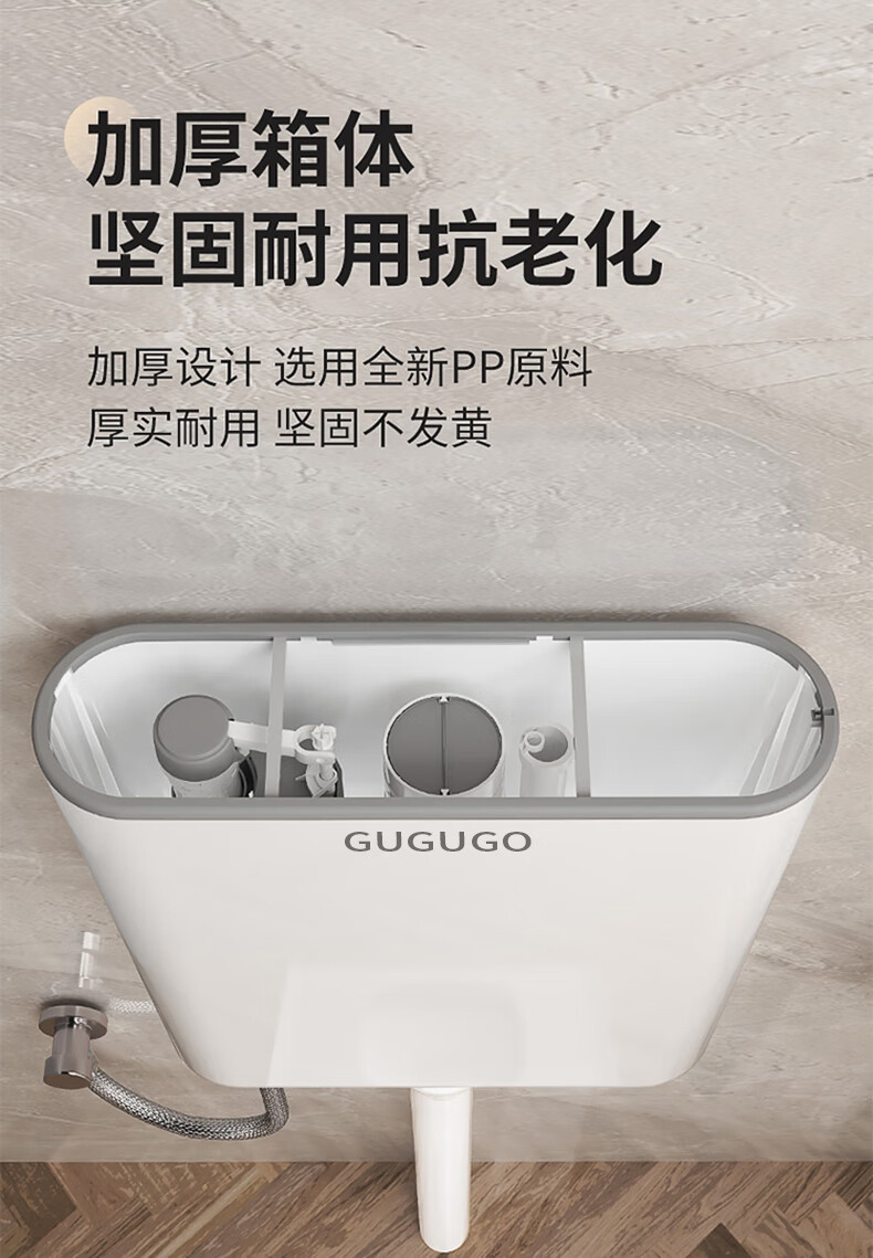 GuGuGo【德国】厕所马桶冲水箱冲便器家用卫生间轻音大冲力蹲便器抽水箱 马桶水箱【高配水件+加厚箱体】 可控容量丨强力冲水丨加厚高配箱体