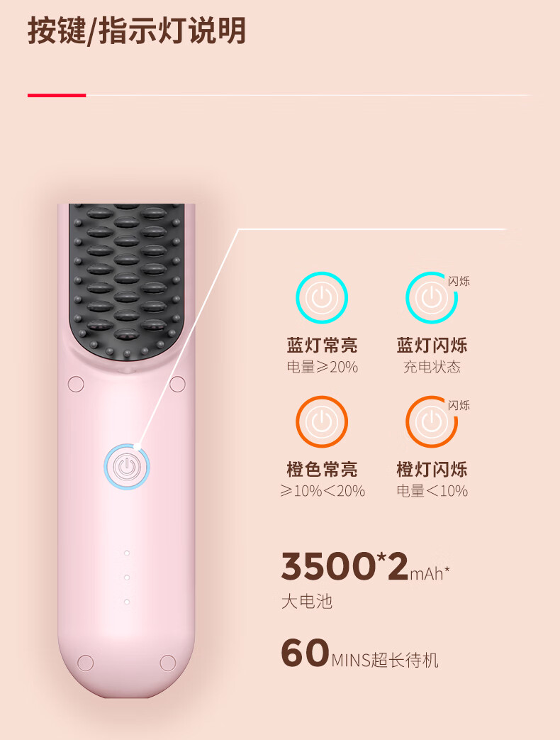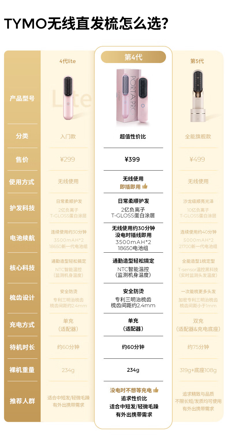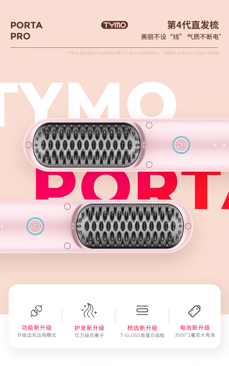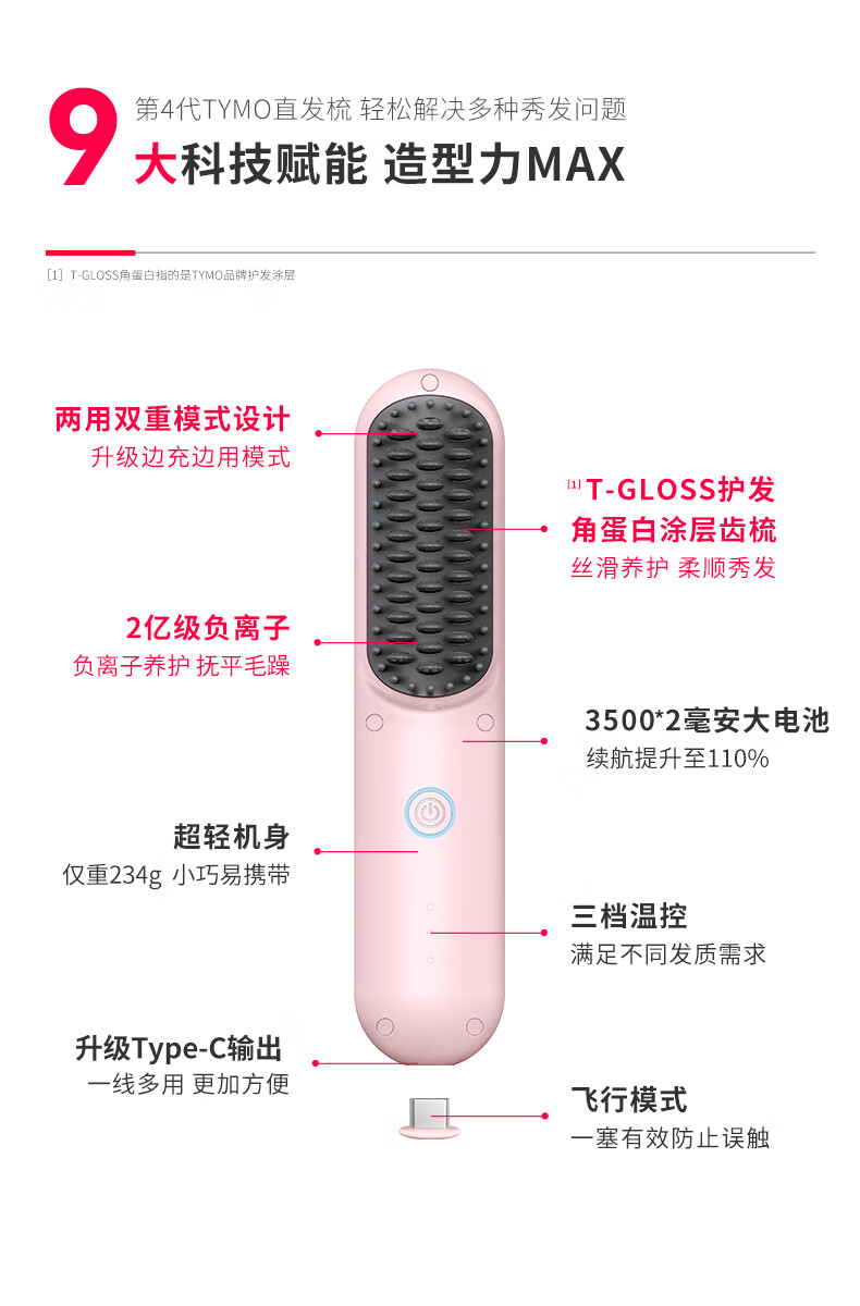 TYMO【明星同款】第4代无线直发梳有线无线二合一负离子直板夹卷发棒不伤发高颅顶抚平毛躁 礼物推荐