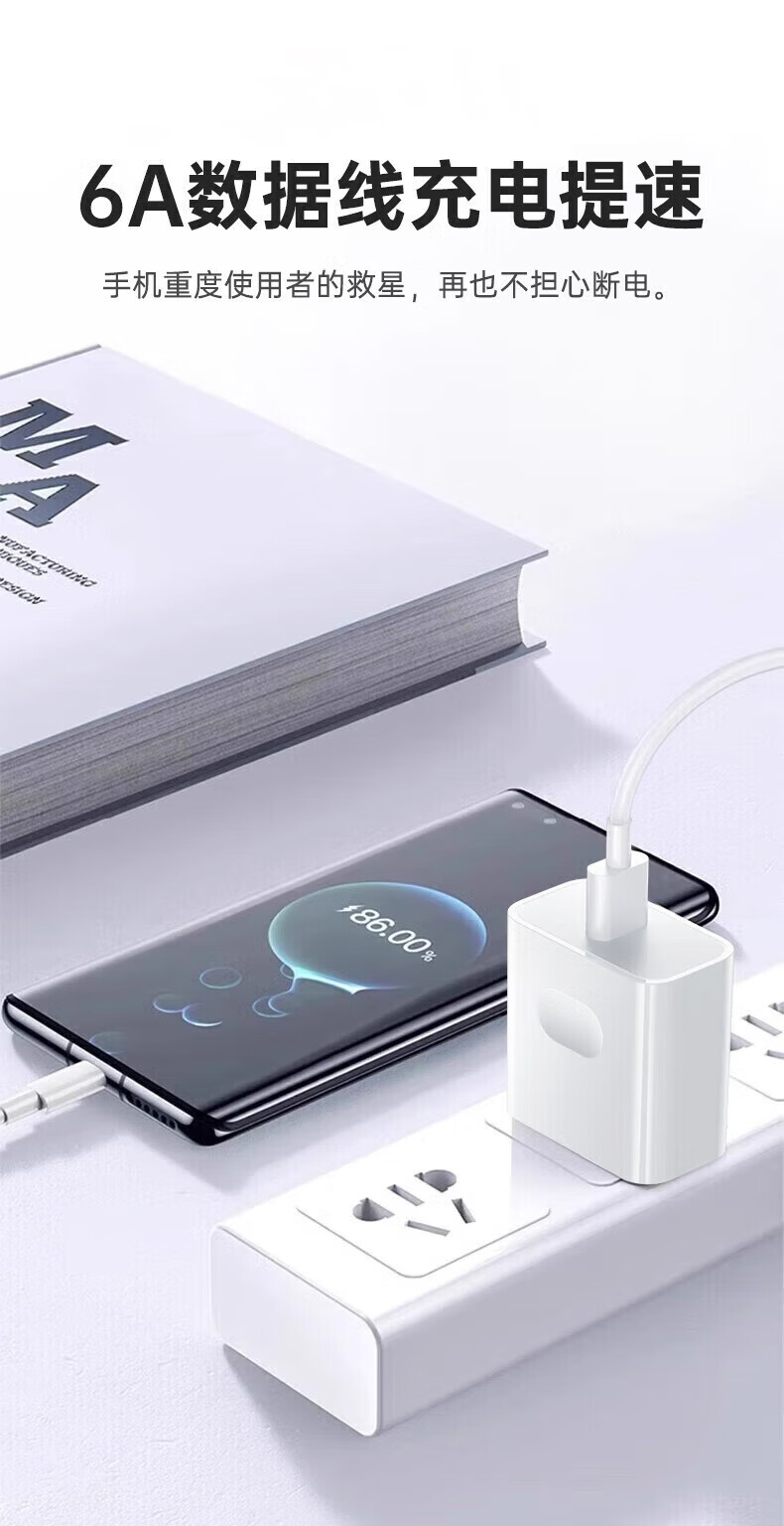 圣希顿适用华为120w超级充电器快充头mate60pro闪充6A插头p50p40p30适用荣耀v40v30手机nova8/9数据线60 【120w超级充电头】送1.5米快充线