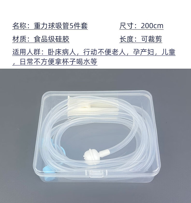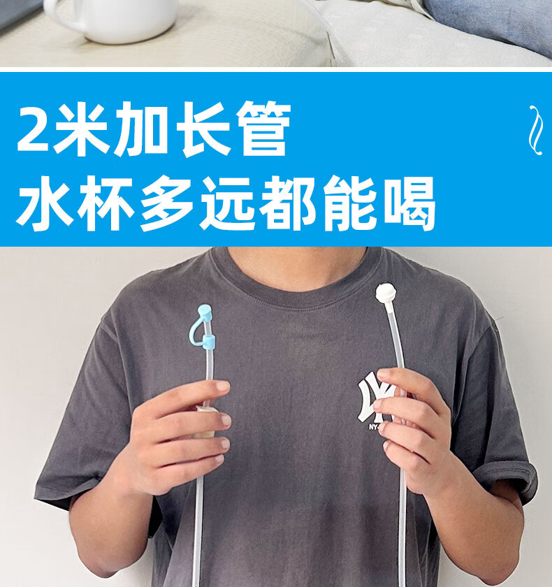 木笛斯超加长吸管孕妇懒人躺着喝水牛奶食品级硅胶软管病人老人儿童防呛 2米重力球食品级硅胶软吸管5件套