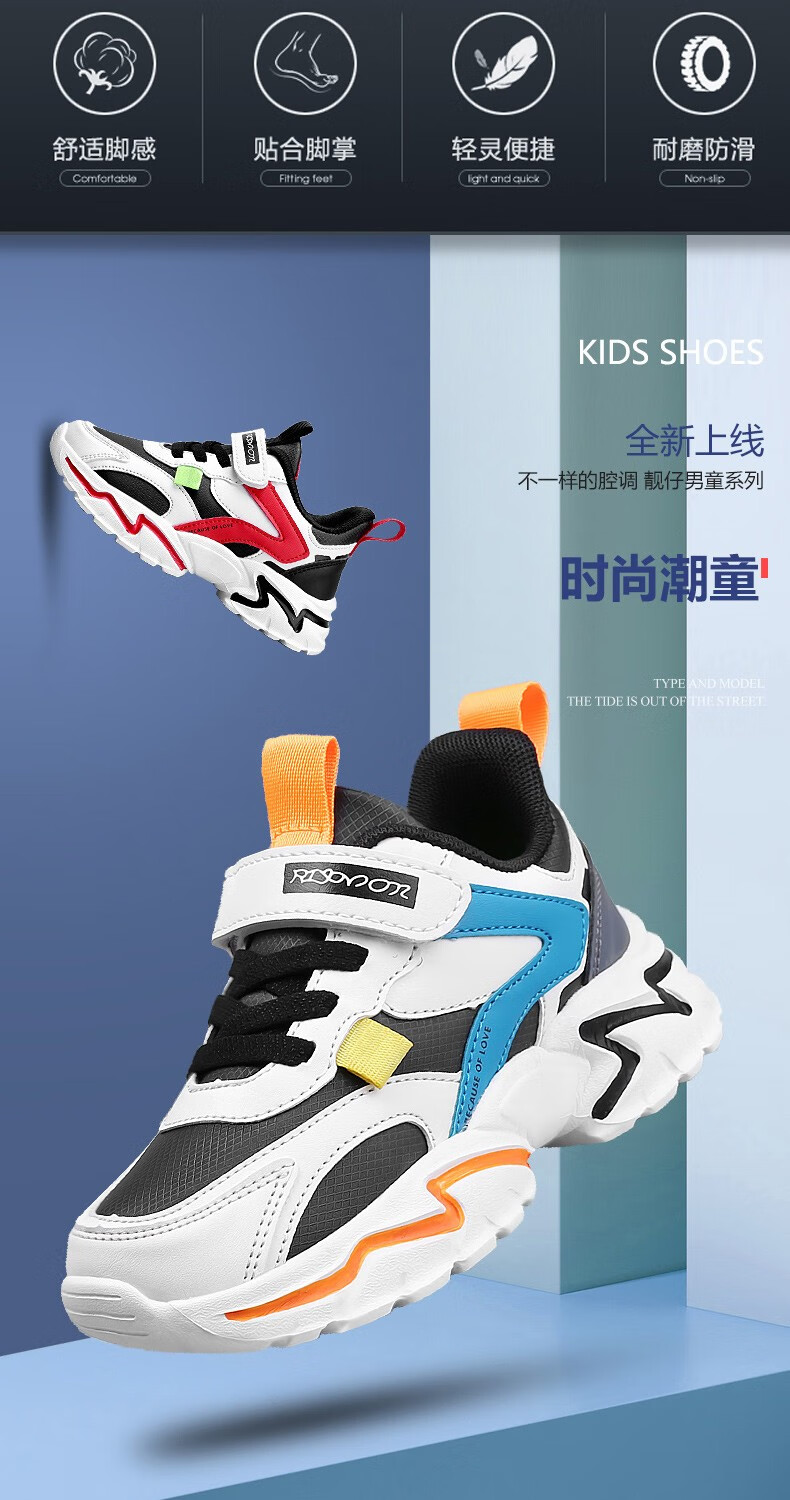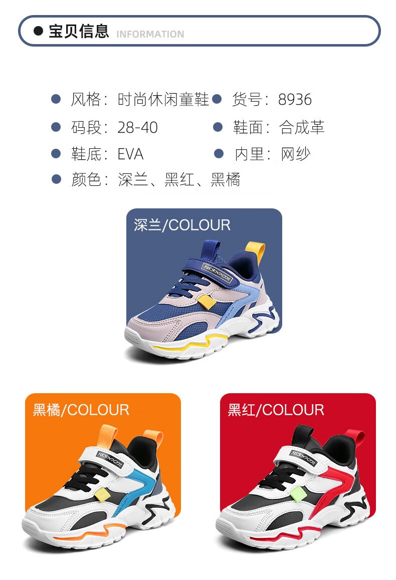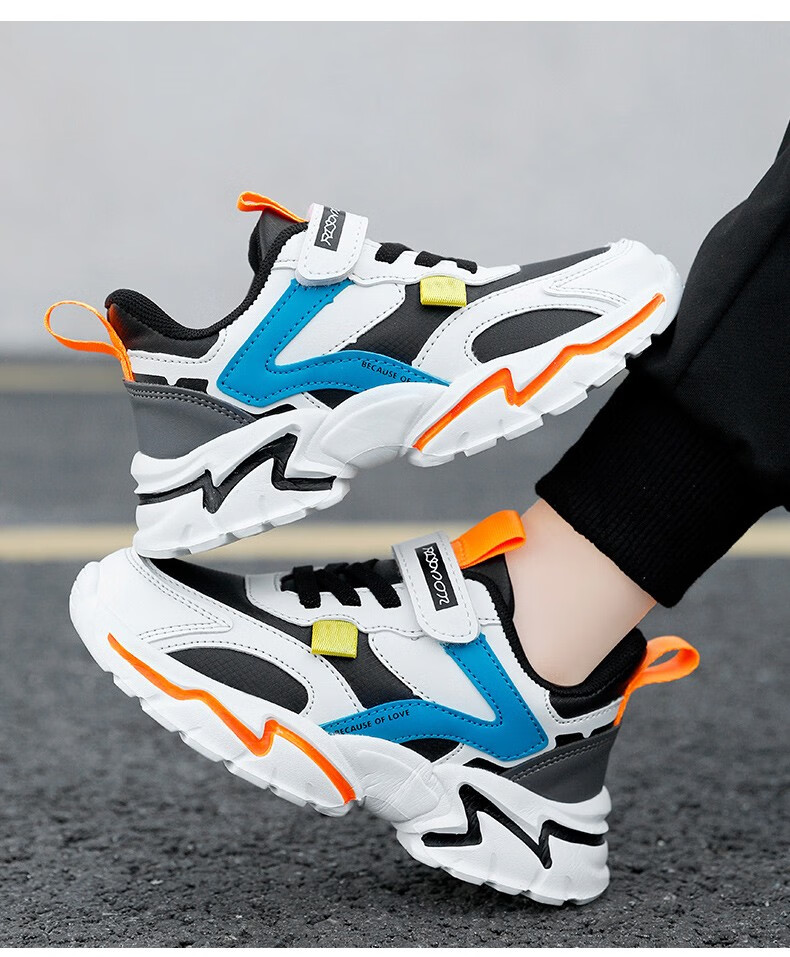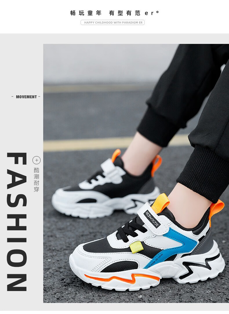 贝天熊童鞋男童运动鞋秋冬季新款儿童加绒保暖棉鞋中大童时尚百搭休闲防滑小男孩学生防水皮面跑步鞋 BBG8938黑橘【皮面】 28码/内长18.0cm【建议脚长17.0】