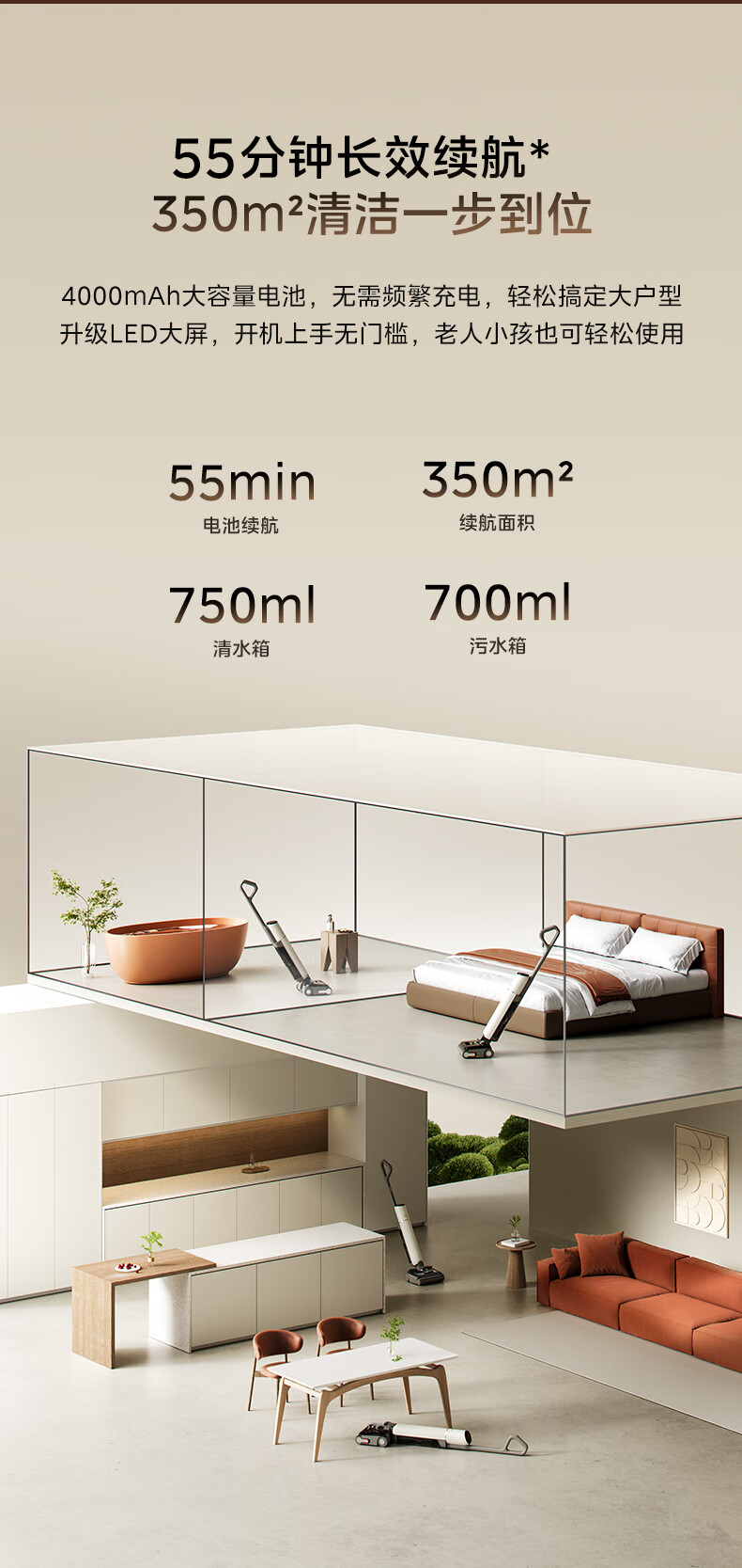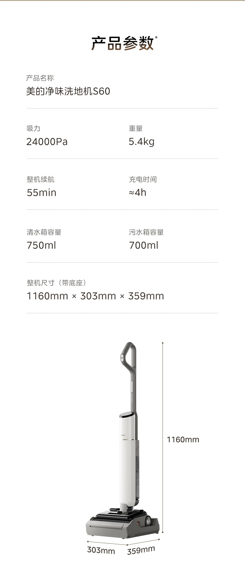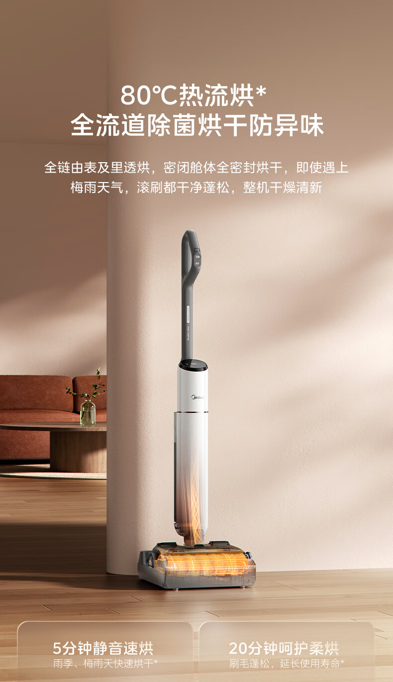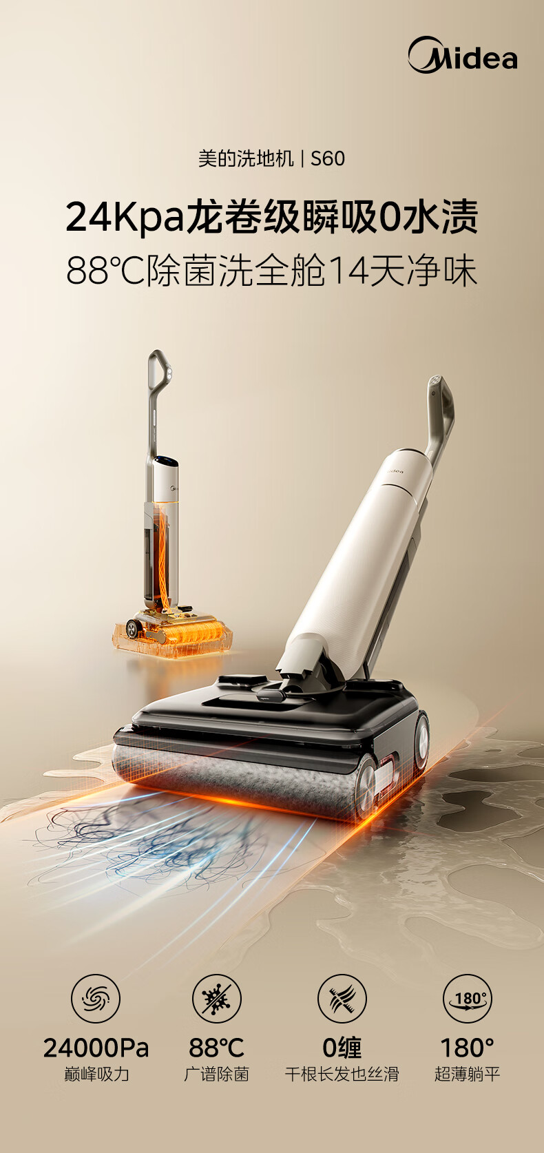 美的(Midea)S60净味洗地机【超薄躺平】家用自动清洗吸拖洗一体拖地机扫地机净澈S1同款【国家补贴】