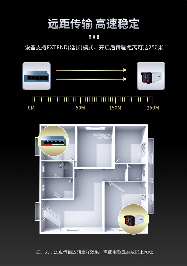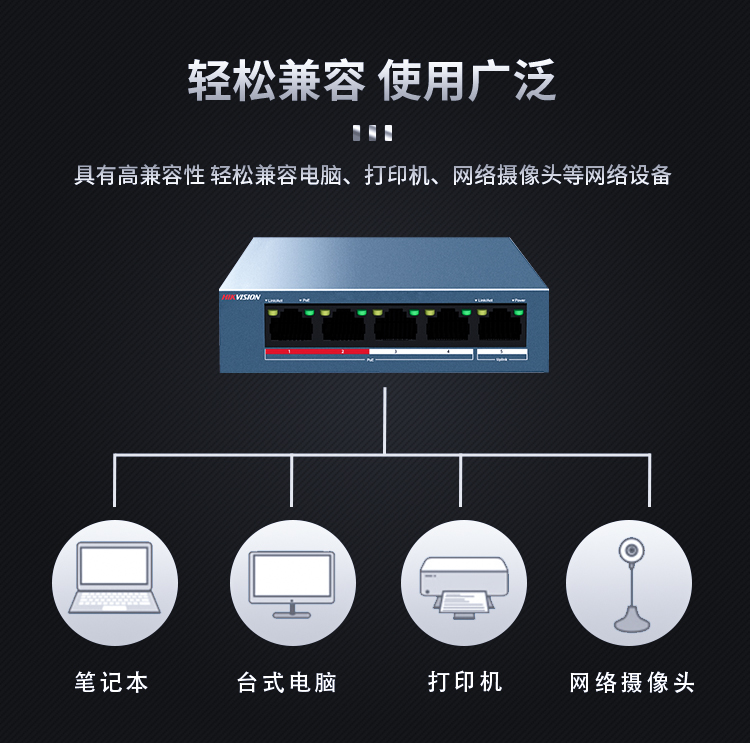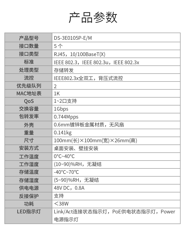 HIKVISION海康威视 POE交换机 5口百兆 监控交换机 金属外壳散热 非网管延长网线传输DS-3E0105SP-E