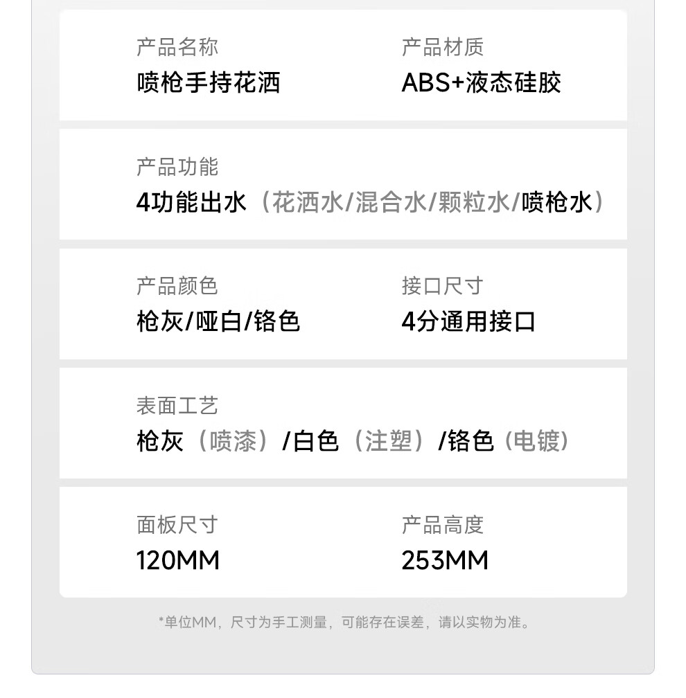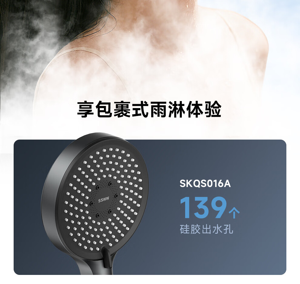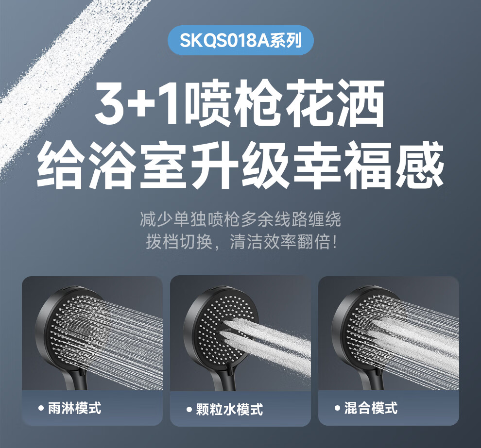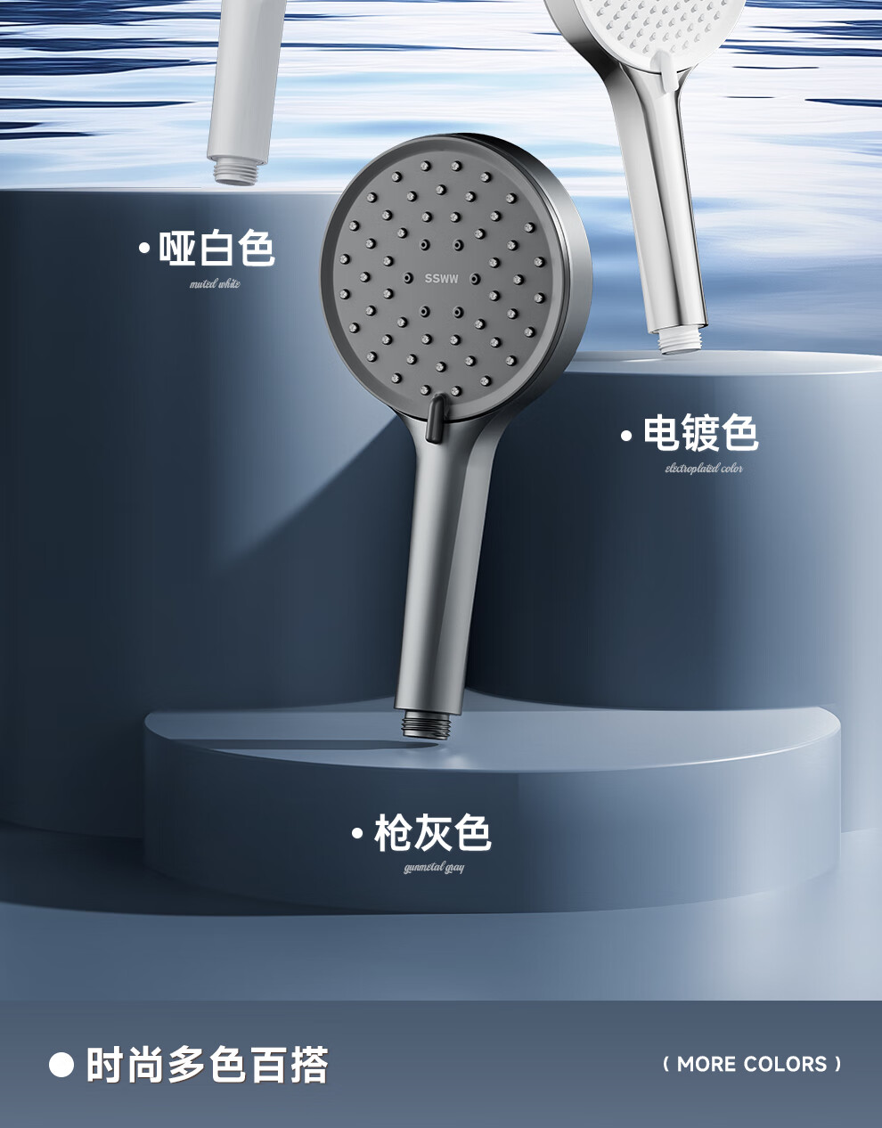 浪鲸(SSWW)卫浴淋浴花洒喷头手持增压花洒头除垢喷枪简易硅胶出水沐浴花洒 哑白【三功能】除垢手持花洒017A