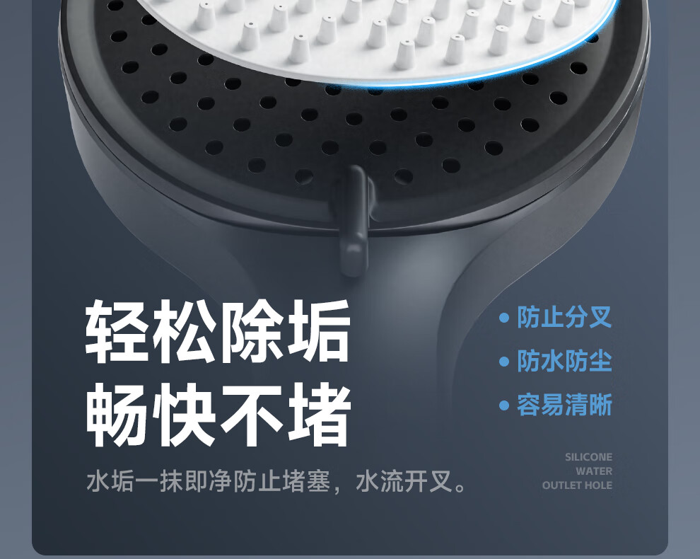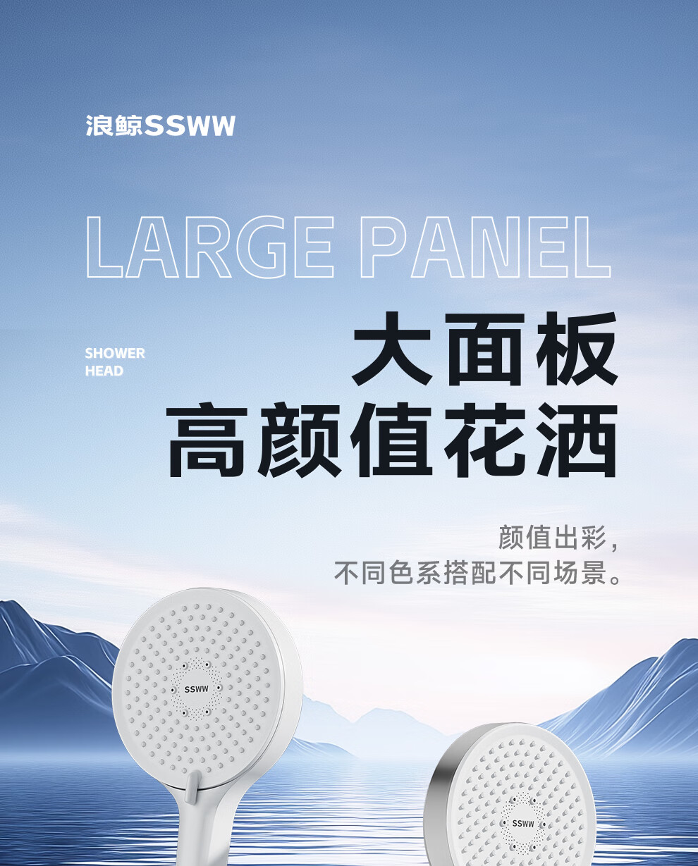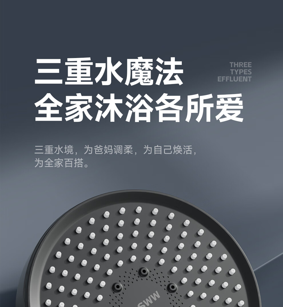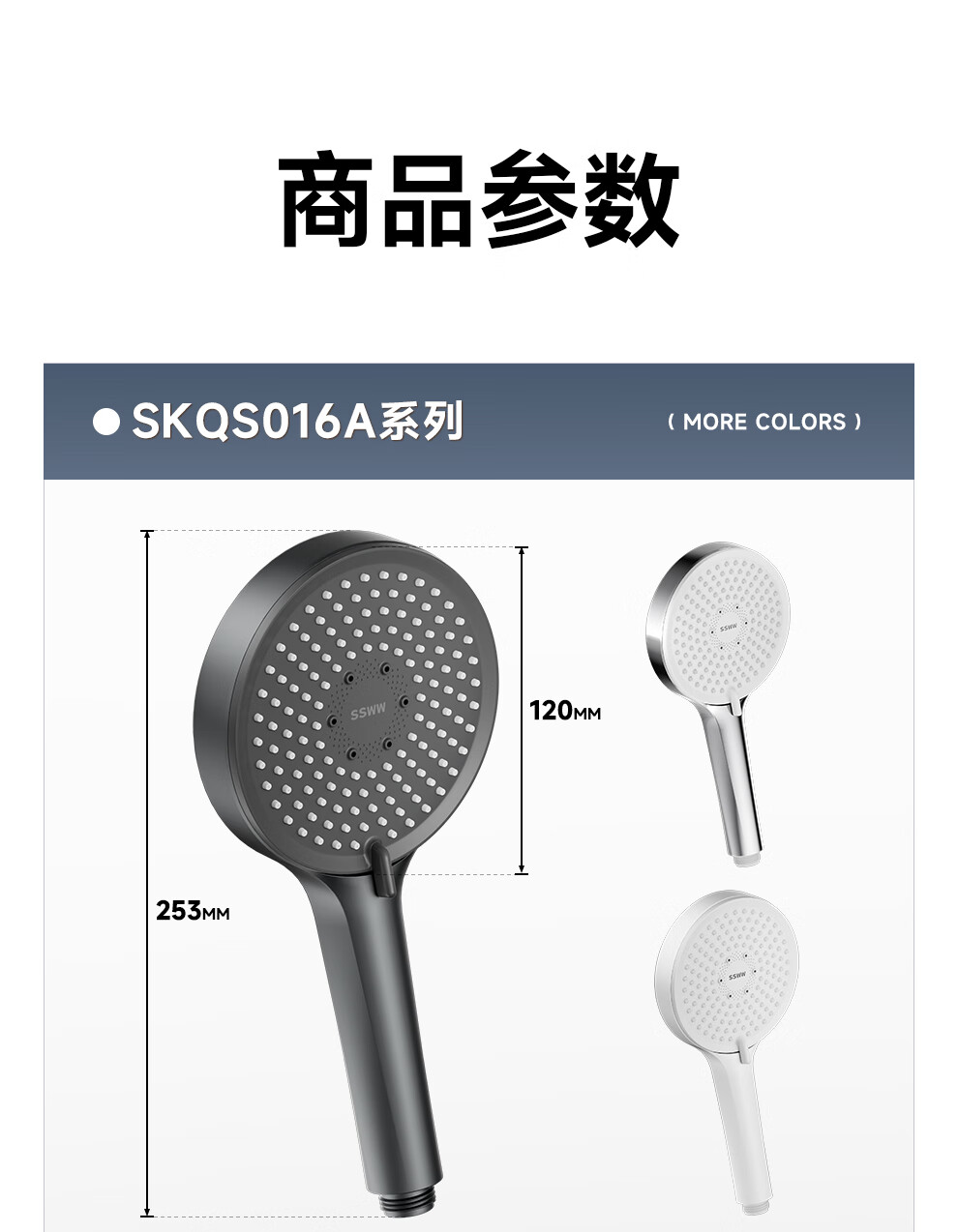浪鲸(SSWW)卫浴淋浴花洒喷头手持增压花洒头除垢喷枪简易硅胶出水沐浴花洒 哑白【三功能】除垢手持花洒017A