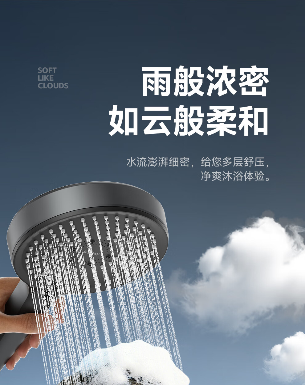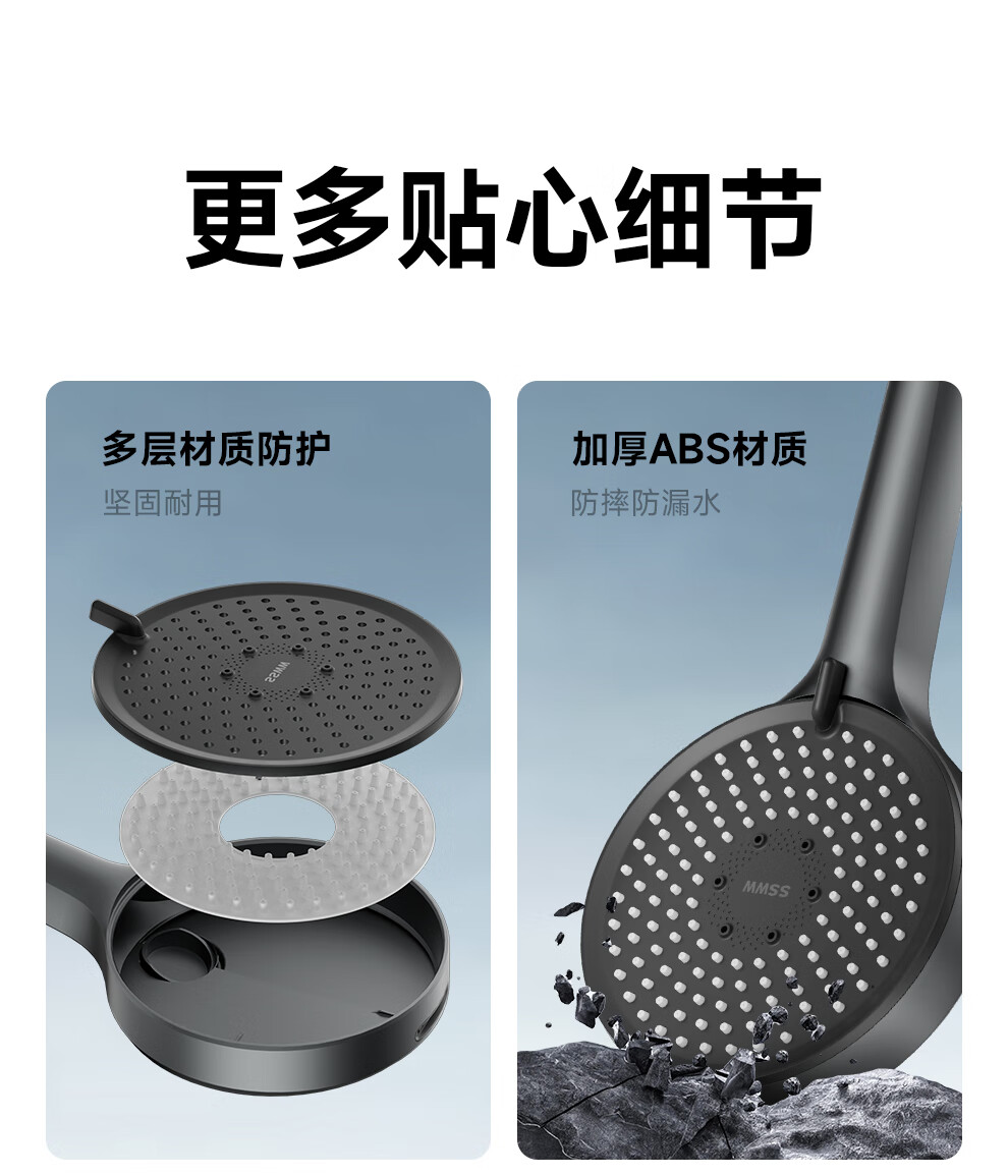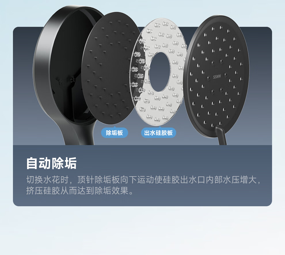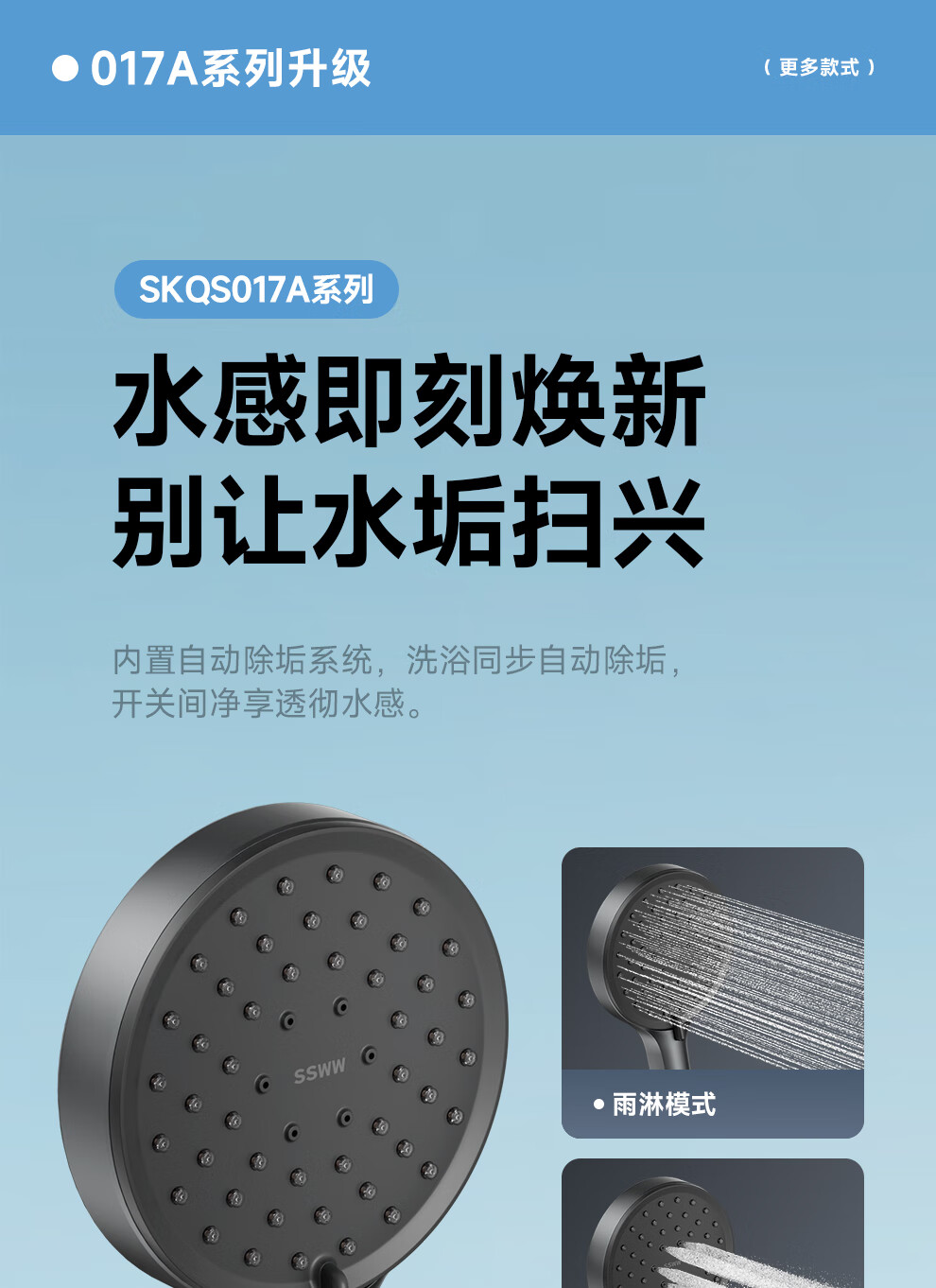 浪鲸(SSWW)卫浴淋浴花洒喷头手持增压花洒头除垢喷枪简易硅胶出水沐浴花洒 哑白【三功能】除垢手持花洒017A